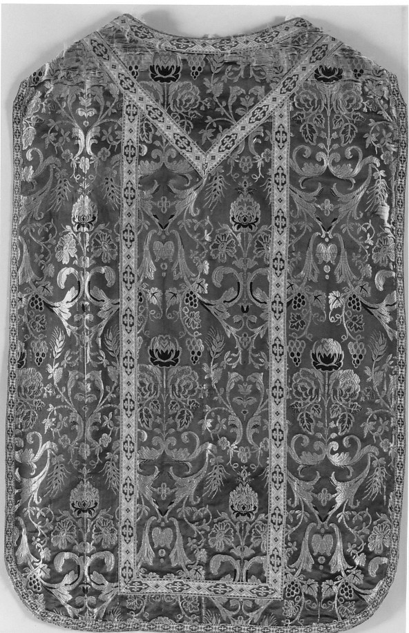 Pianeta decorato con motivi floreali e vegetali e nastro con elementi cruciformi