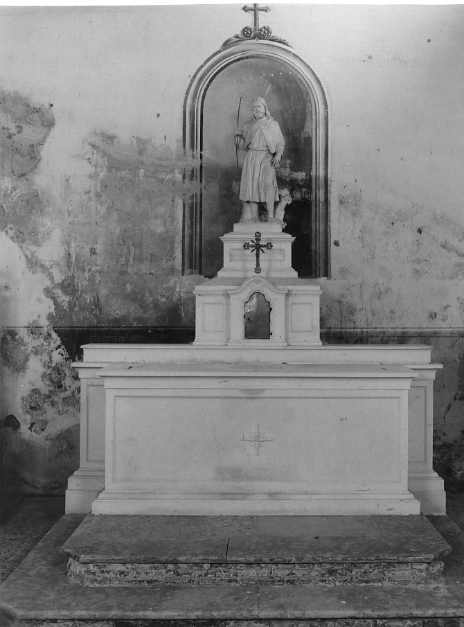 Altare con paliotto a pannello piano con una semplice crocetta al centro. Alzata con tabernacolo, sopra al quale vi è la statua di San Rocco