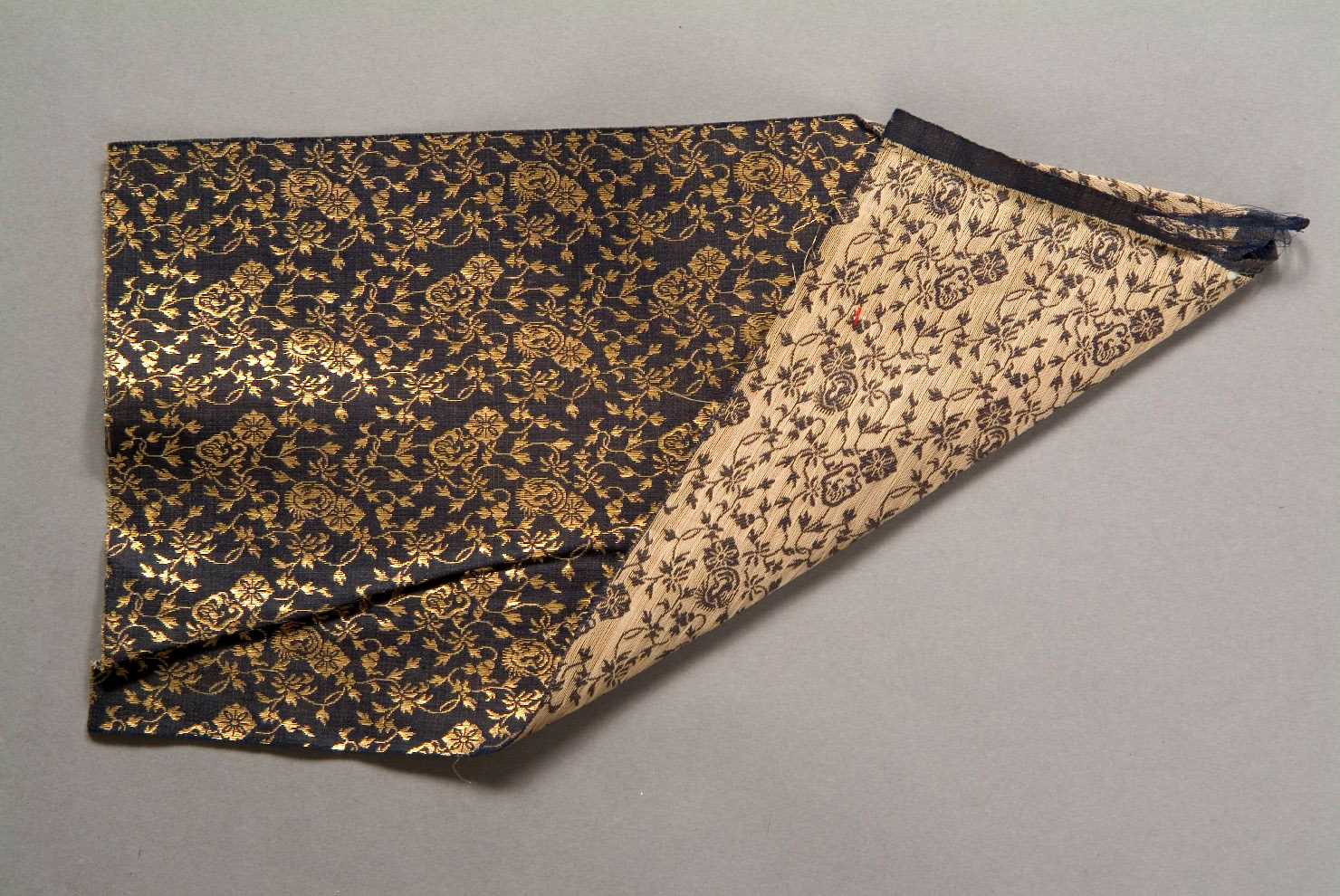 Creps di seta. Motivi vegetali in oro su fondo blu