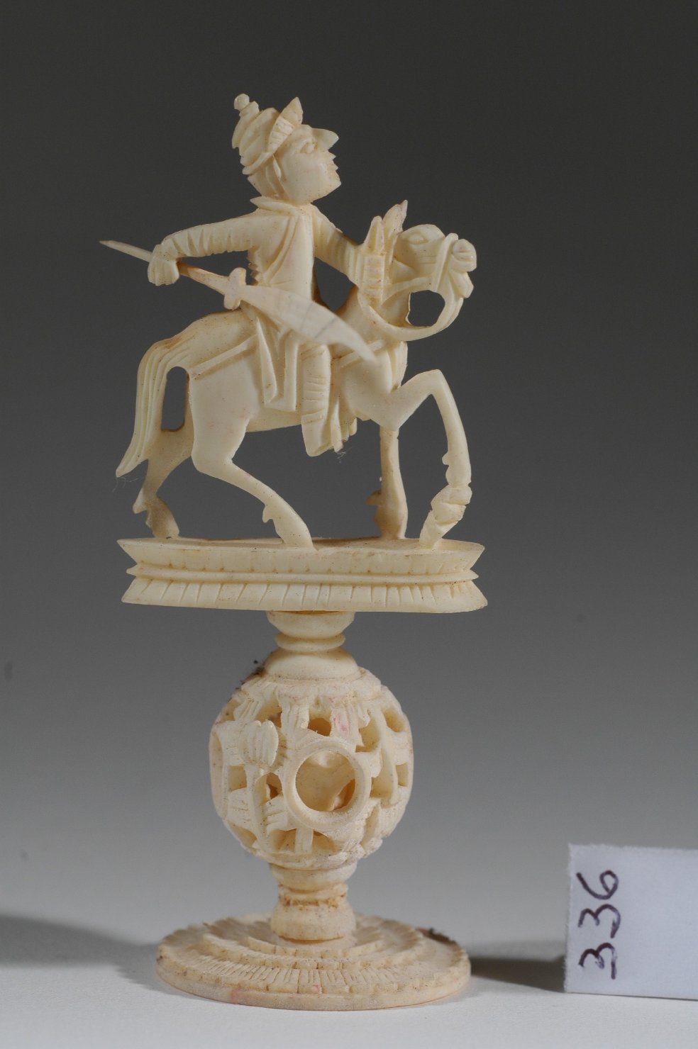Pedina figurata per il gioco di scacchi. Figura posta su base traforata