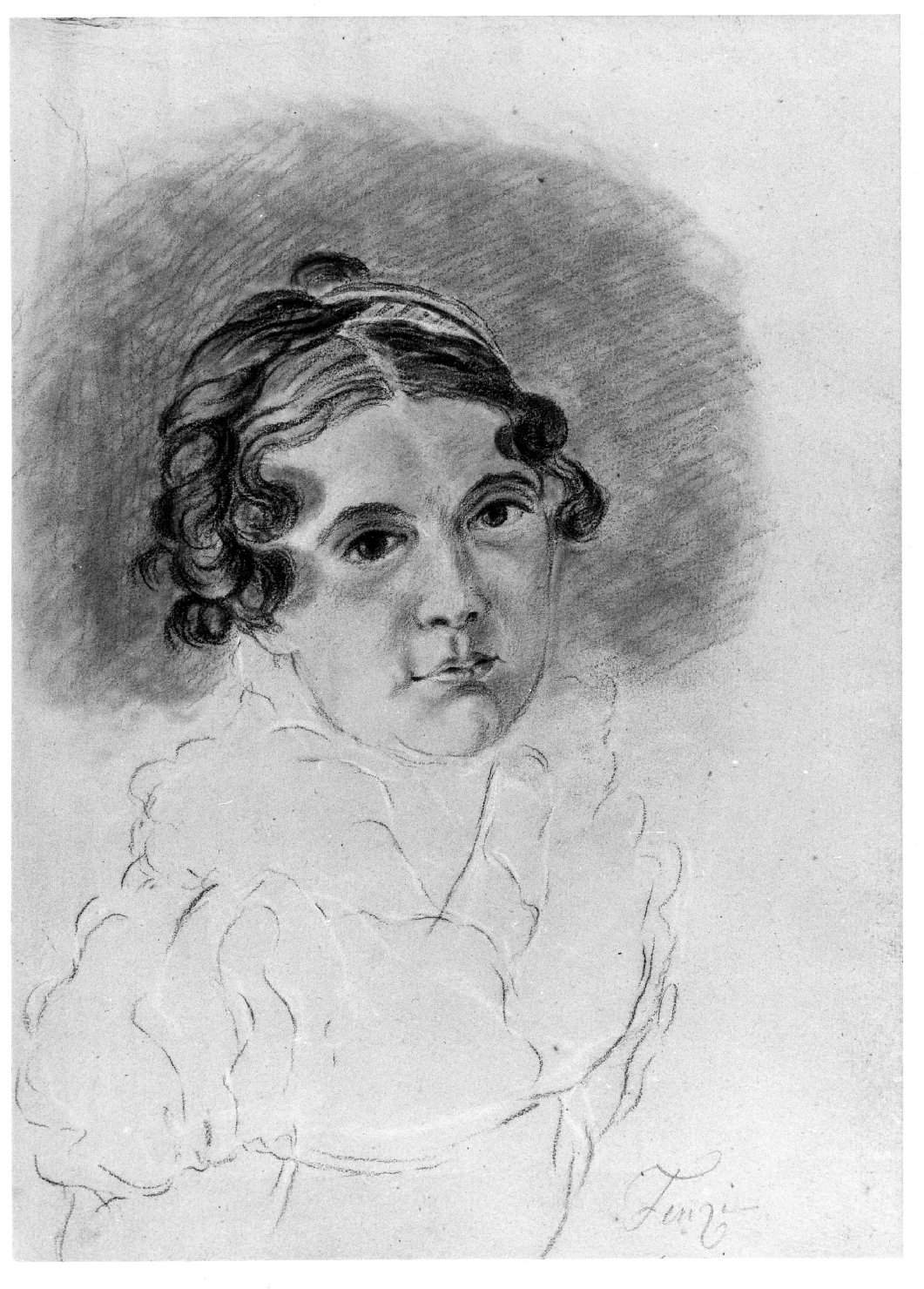 Disegno su carta grigia a carboncino, sanguigna e gesso bianco raffigurante una fanciulla a mezzo busto con i capelli raccolti