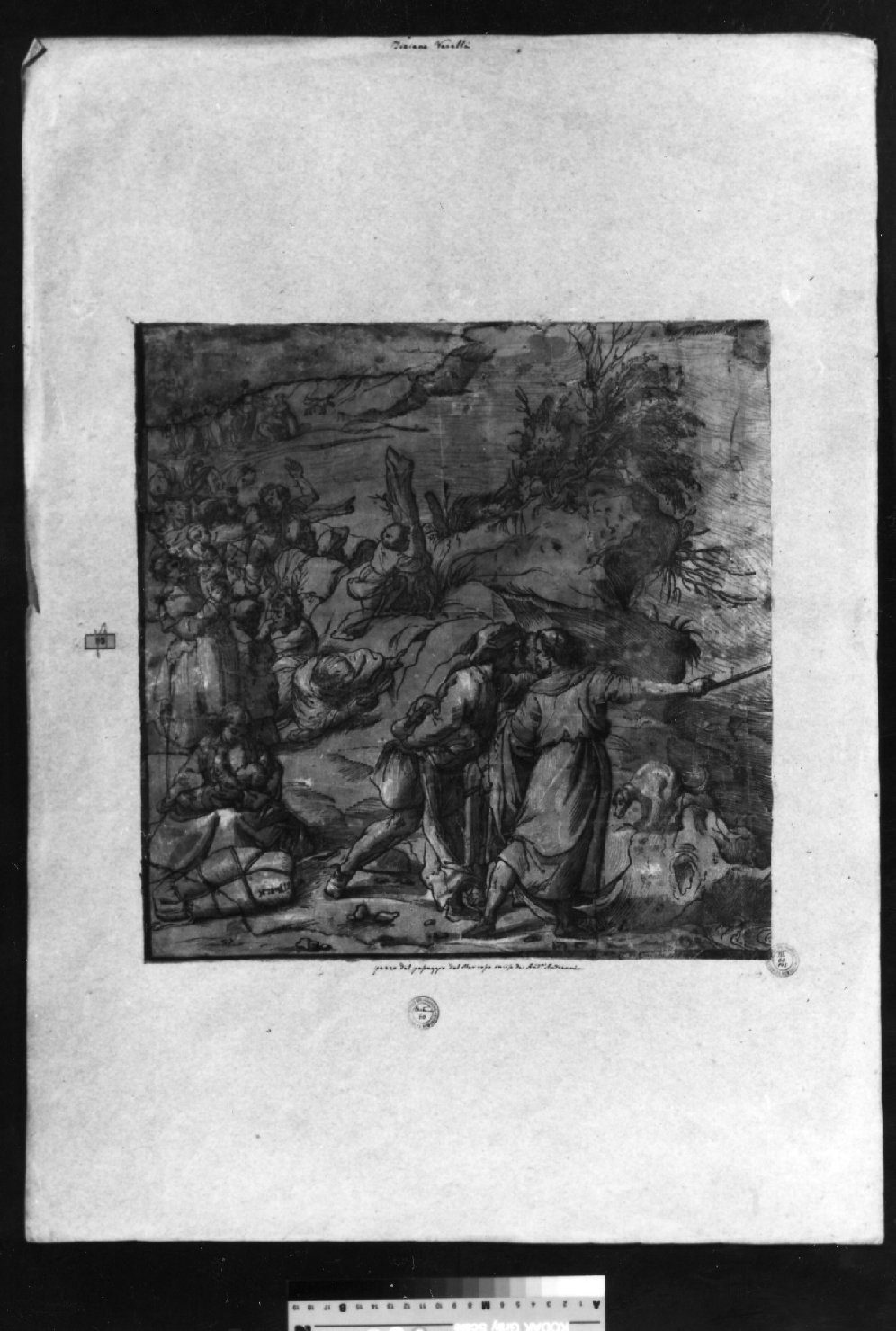- NOTIZIE STORICO CRITICHE Sul cartone è incollata la stampa n. 103. A sin. è applicato un bollino rettangolare azzurro con impresso il vecchio numero d'inventario (85) barrato a matita rossa