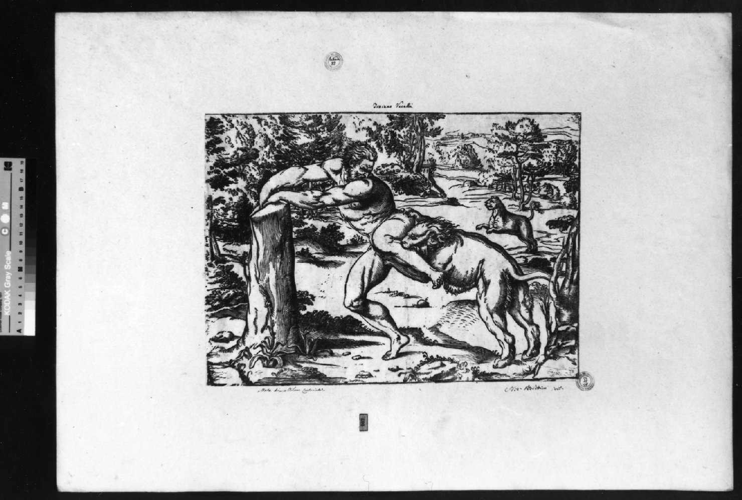 • NOTIZIE STORICO CRITICHE Sul cartone sono incollate le stampe n. 127 (recto), 128 (verso). Su ogni lato del cartone è applicato un bollino rettangolare azzurro con impresso il vecchio numero d'inventario (107, 108) barrato a matita rossa