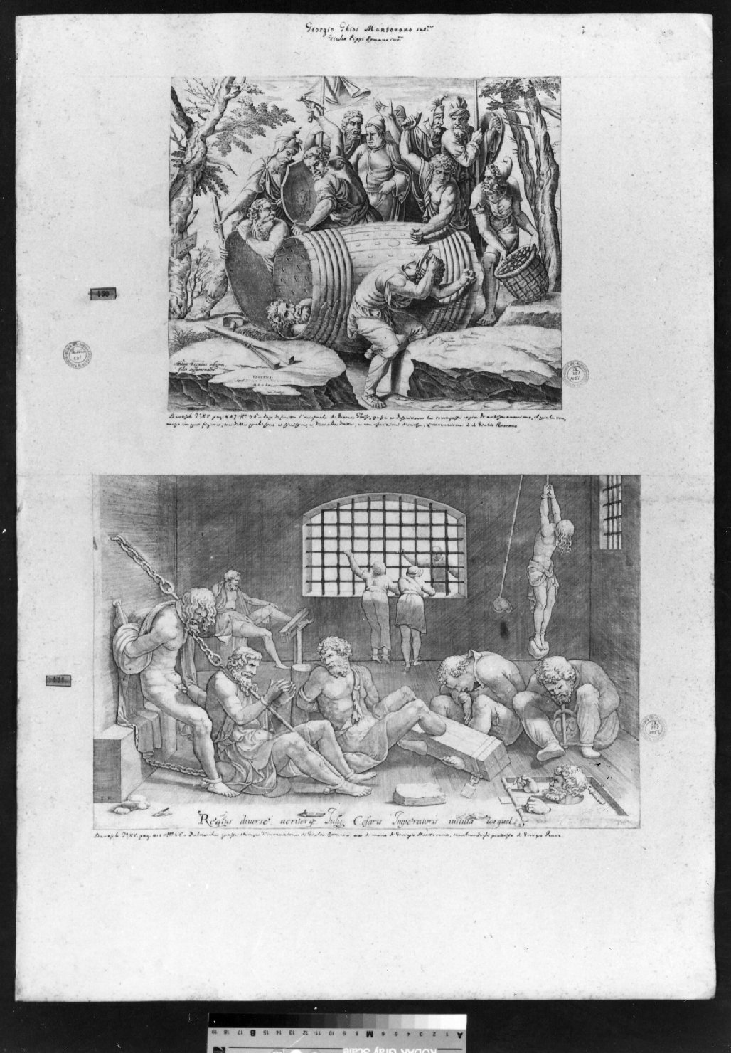 - ISCRIZIONI in alto al centro - Giorgio Ghisi Mantovano int:re/ Giulio Pippi Romano inv:re - corsivo - a penna -