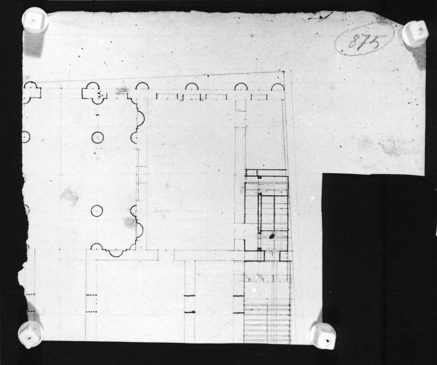 Il disegno è realizzato su un ritaglio irregolare. Particolare della pianta di palazzo Cordellina