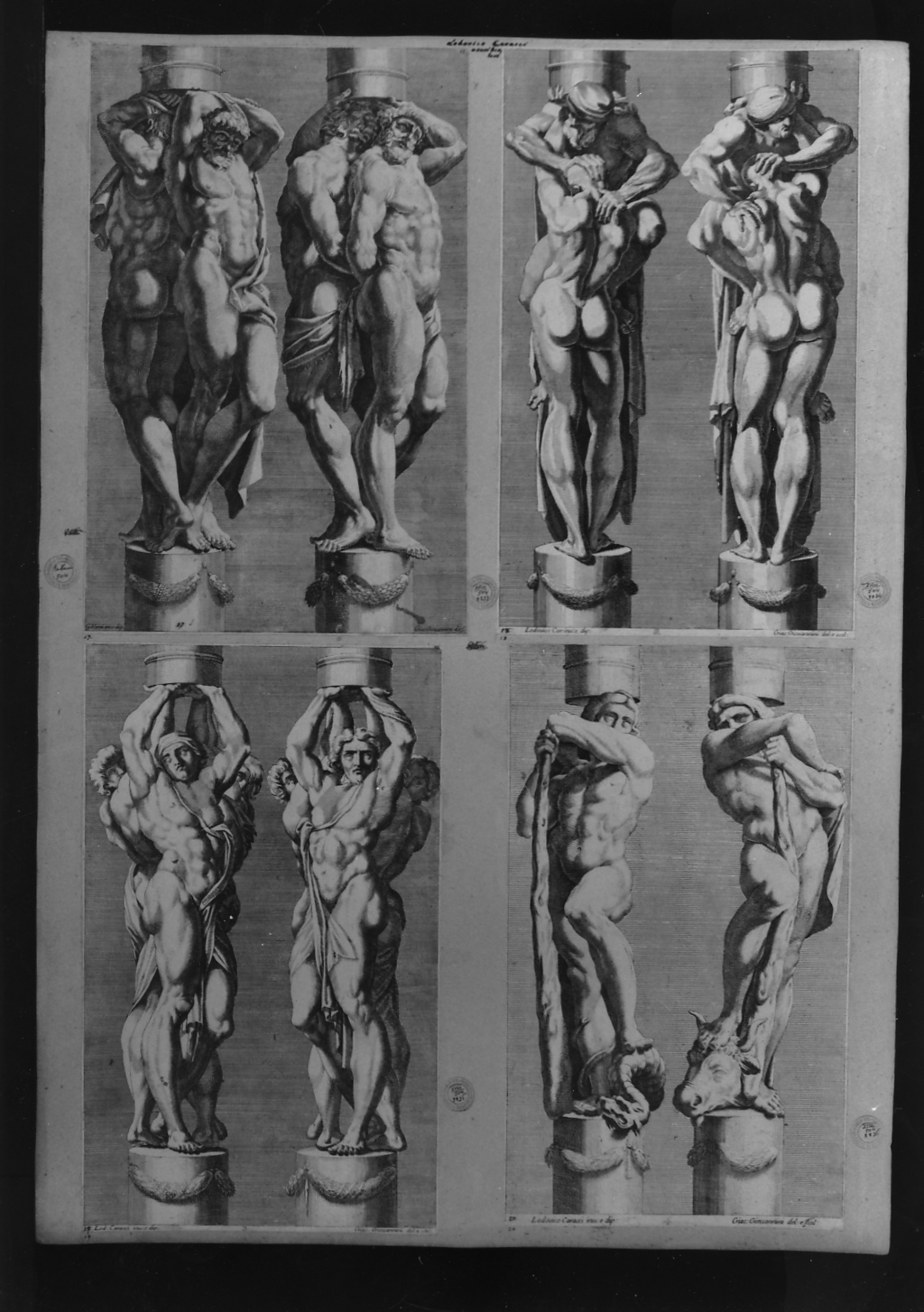 - NOTIZIE STORICO CRITICHE Sul cartone sono incollate le seguenti stampe: nn. inv.2333; 2334; 2335; 2 336. A sinistra dell' incisione n.2233 e al centro delle altre quattro so no segnati rispettivamente in nero e in rosso i nn.856 barrati a matita ma rrone