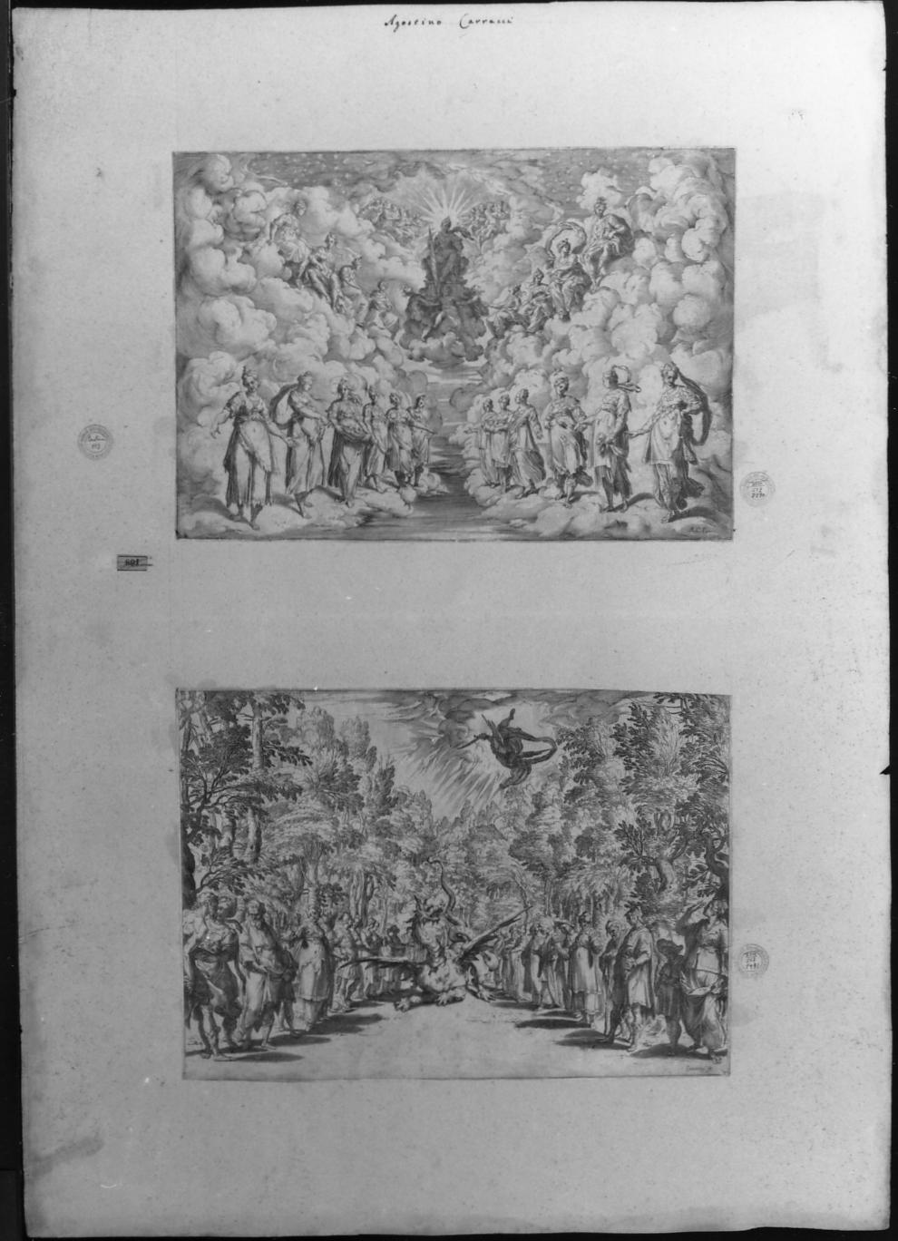 - ISCRIZIONI in alto al centro - Agostino Carracci - corsivo - a penna -