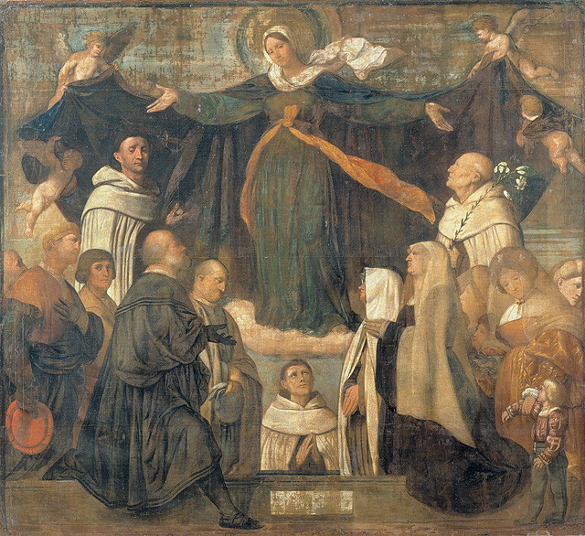 - NOTIZIE STORICO CRITICHE Acquistato da Antonio Canova, a Roma presso la famiglia Ottoboni per il suo tempio di Possagno, assieme a un "gonfalone" analogo: sembra provenisse da Pissincana presso Pordenone dove quella famiglia, di origine bresciana, possedeva dei terreni. Alla morte del Canova l'opera passò in eredità al fratello, Vescovo di Minto, il quale mentre tratteneva per Possagno il gonfalone propose all'Accademia il cambio della tela con altri 2 dipinti più adatti ad essere collocati sull'altare del tempio; accolta la proposta nel 1827: furono inviate a Possagno due pale dell'Accademia