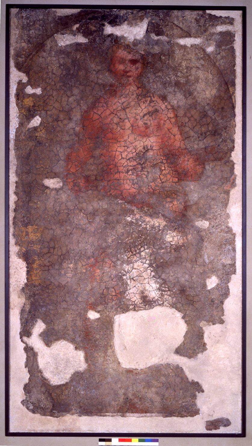 - NOTIZIE STORICO CRITICHE Il frammento di figura femminile solitamente definita "Nuda", ma in realtà figura allegorica che tiene in mano una sfera, proviene dalla facciata d' acqua del Fondaco dei Tedeschi, conclusa da Giorgione nel 1508. Faceva par te di una vasta decorazione che sviluppava un complesso programma iconogra fico, poco comprensibile già a Vasari (1568). Nonostante il precario stato di conservazione, si riconoscono le tracce dell'intensa cromia originaria