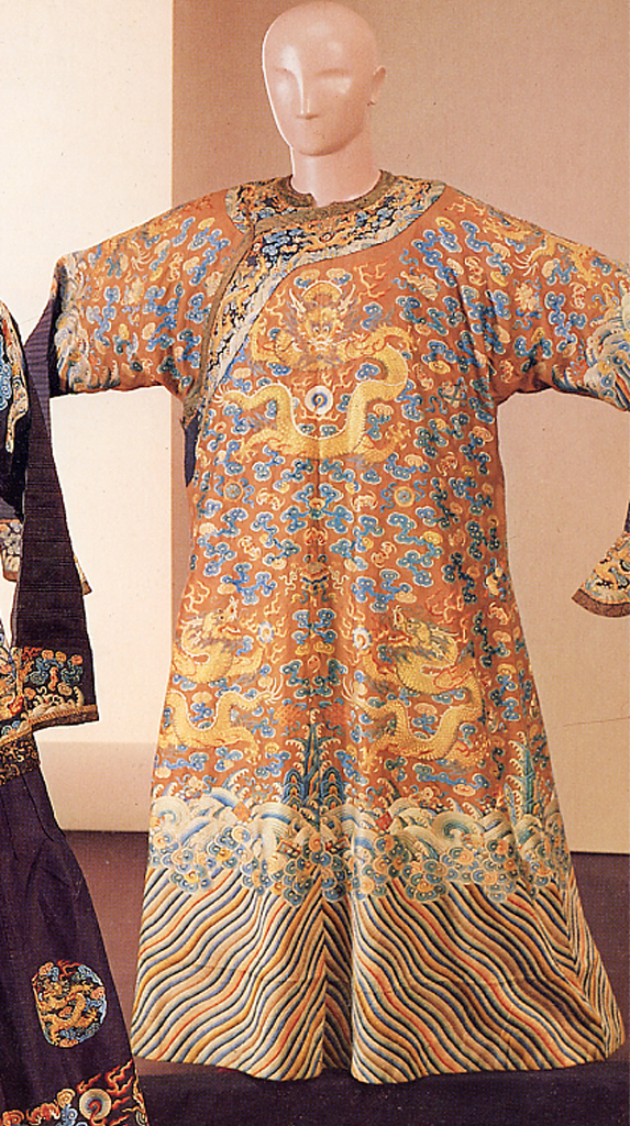 - NOTIZIE STORICO CRITICHE Jifu, appartiene al vestiario ufficiale semiformale o "festivo". Acquistato in Cina da Enrico di Borbone Conte di Bardi tra ottobre 1888 e febbraio 1889. L'abito presenta caratteri di grande raffinatezza, non solo per l'eccellente qualità dei materiali, ma anche per la delicatezza dell'esecuzione a ricamo. Lo stile delle decorazioni, perfettamente conformi all'iconografia canonica stabilita dal 1759, sembra ancora risentire della vitalità e della pienezza espressiva Qianlong (1736-95), pur mostrando qualche segno di stilizzazione; in base a queste considerazioni D. Failla (1985,p.60,cat.n.72), stabilisce la collocazione cronologica 1780-1820, anche sulla base di un confronto con analogo abito del Royal Ontario Museum di Toronto (cfr. H.Fernald, Chinese Court Costumes,Toronto 1946, tav: XVI, cat.1, p.33). Il paragone con abiti del Victoria and Albert Museum di Londra, pubblicati in seguito, sembra suggerire una datazione al primo quarto del secolo XIX (cfr.V.Wilson, Chinese Dress, Victoria and Albert Museum, London 1986, p.41, fig.26, p.87, fig.81)