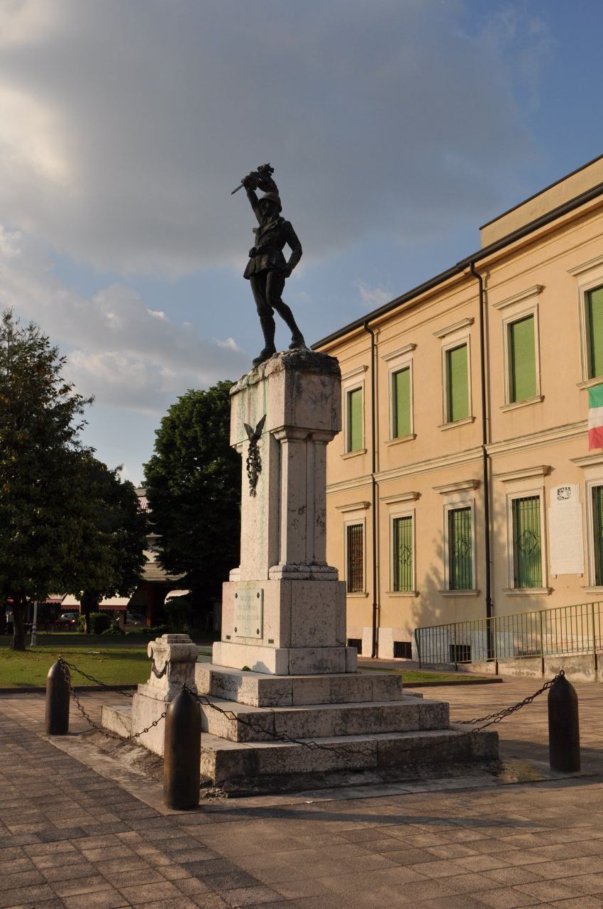 - NOTIZIE STORICO CRITICHE Nel 1921 si costituì un comitato “per l’erezione di un ricordo marmoreo”, appoggiato dal Comune (Luciani 2000, p. 196); nonostante ciò, si verificarono alcuni scontri a riguardo del monumento (Trevisan 2005, p. 31). Nel novembre 1923 si inaugurò il viale della Rimembranza (Luciani 2000, p. 196), il 26 ottobre 1924 il monumento ai Caduti (“L’Arena”, 30-10-1924; Trevisan 2005, p. 79). Nel novembre del 1928 venne scoperta la lapide, murata sulla parete dell’edificio scolastico di fronte a cui si trova il monumento, che riporta il testo del Bollettino della Vittoria e che è anch’essa, come quest’ultimo, di Egisto Zago (Luciani 2000, pp. 197-198, che cita “L’Arena”, 27-11-1928). E. Luciani, Dal periodo napoleonico al fascismo, in Casaleone. Territorio e società rurale nella bassa pianura veronese, a cura di B. Chiappa, Casaleone 2000, pp. 165-208. Trevisan 2005 = G. Trevisan, Memorie della Grande Guerra. I monumenti ai Caduti di Verona e provincia, Sommacampagna 2005