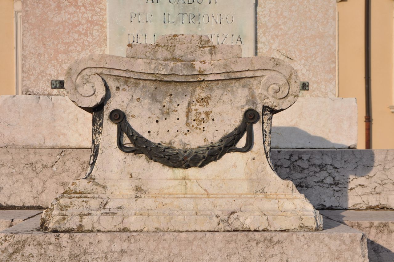 - ISCRIZIONI su lastra applicata al piedistallo del cippo, faccia frontale - Ai Caduti/ per il trionfo/ della giustizia - capitale - a caratteri applicati - italiano