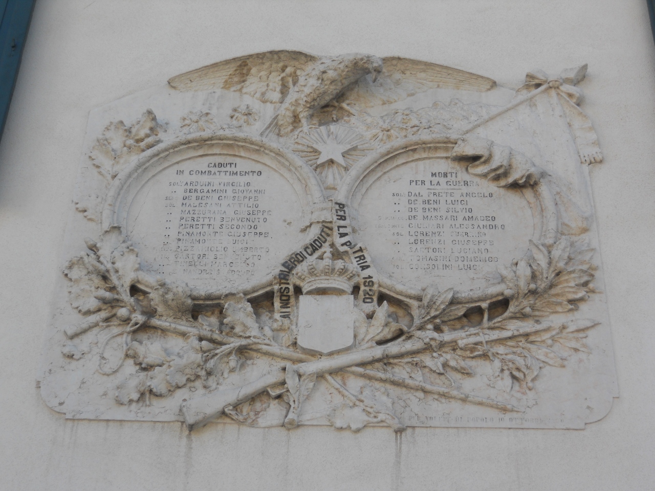 - ISCRIZIONI al centro della fronte - AI NOSTRI EROI CADUTI/ PER LA PATRIA 1920 - corsivo - a incisione - italiano