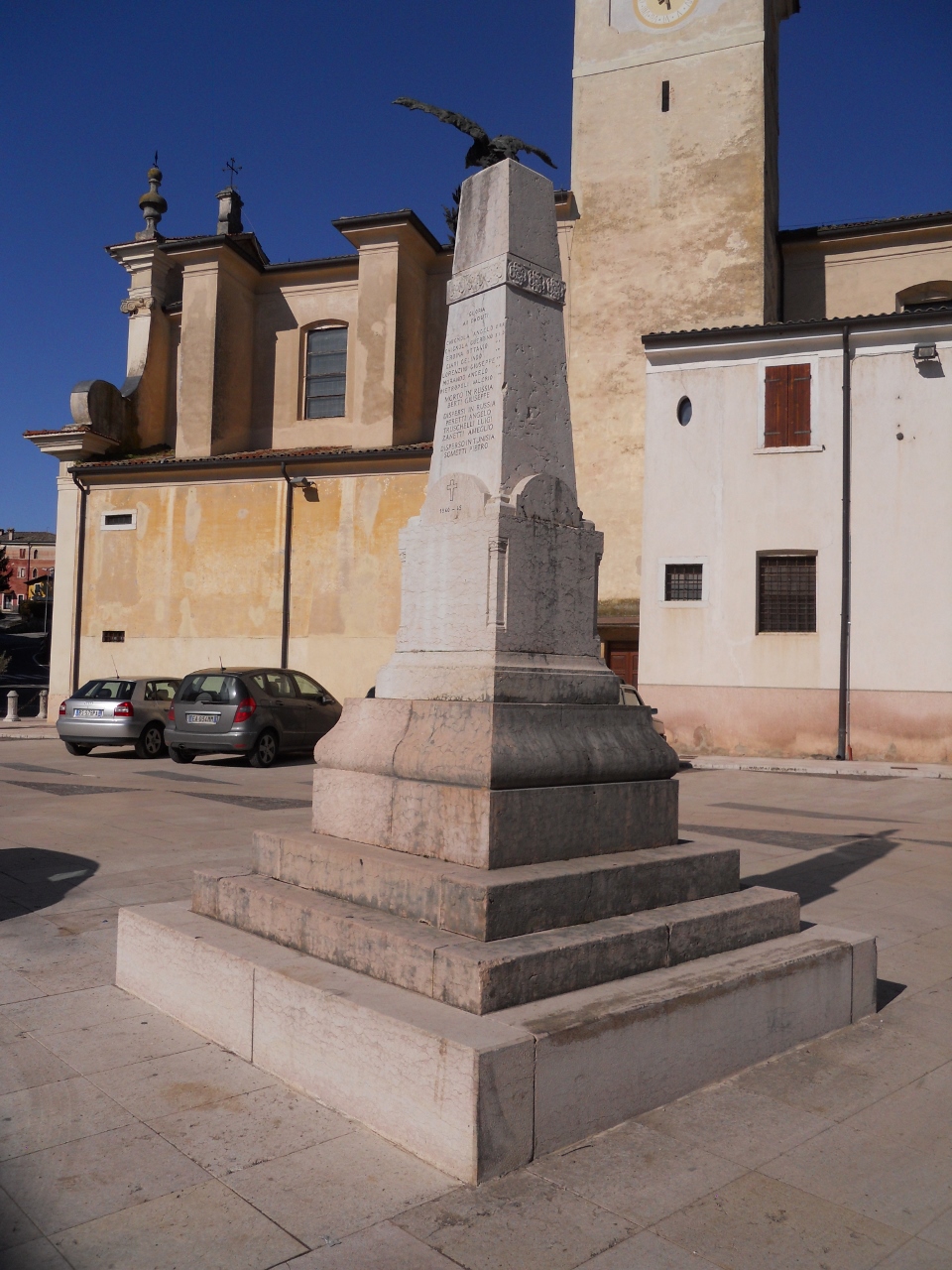 - NOTIZIE STORICO CRITICHE Le notizie riguardo questo monumento sono scarse dal momento che non sono pervenuti articoli dell'epoca. Secondo Trevisan la data d'inaugurazione risale al 23 febbraio 1927, però l'incisione presente nel monumento indica il 1924 come anno di erezione. Ipotizzo un inizio dei lavori in questo anno e una sua inaugurazione più tarda. Cfr. Trevisan G., Memorie della Grande Guerra. I monumenti ai Caduti di Verona e provincia, Cierre, Sommacampagna 2005, p. 80