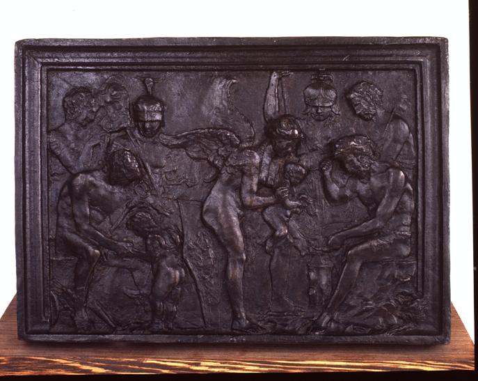 Bassorilievo raffigurante sulla destra Vulcano che forgia le ali di Amore, mentre sulla sinistra Mercurio lo educa insegnandogli a leggere e a scrivere. Al centro Venere, alata, sostiene Amore sulle ginocchia; in secondo piano altre quattro divinità, tra le quali Marte e Minerva. Patina bruna