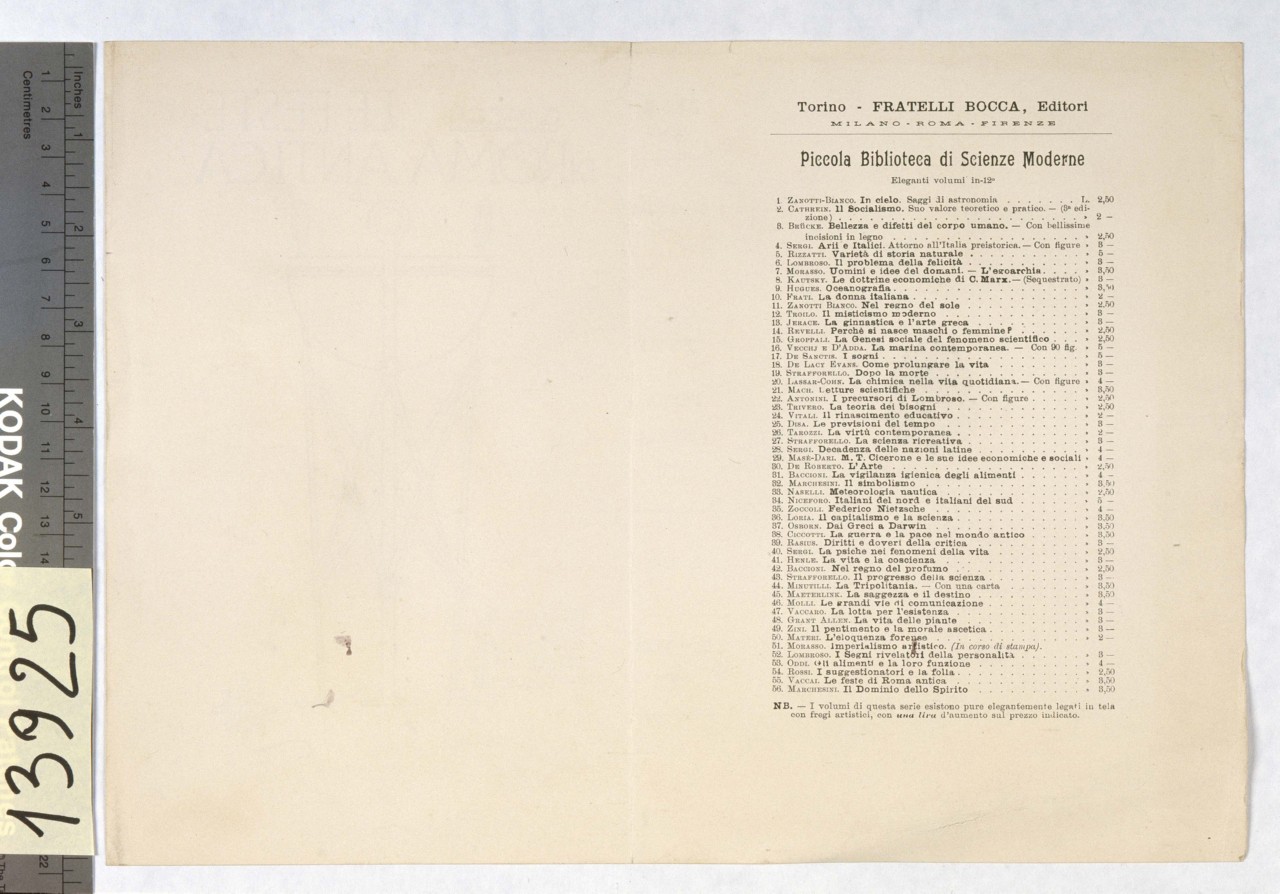 - NOTIZIE STORICO CRITICHE La collana "Piccola Biblioteca di Scienze Moderne" risale al 1897. Mataloni lavora per i Fratelli Bocca tra la fine del XIX e l'inizio del XX sec
