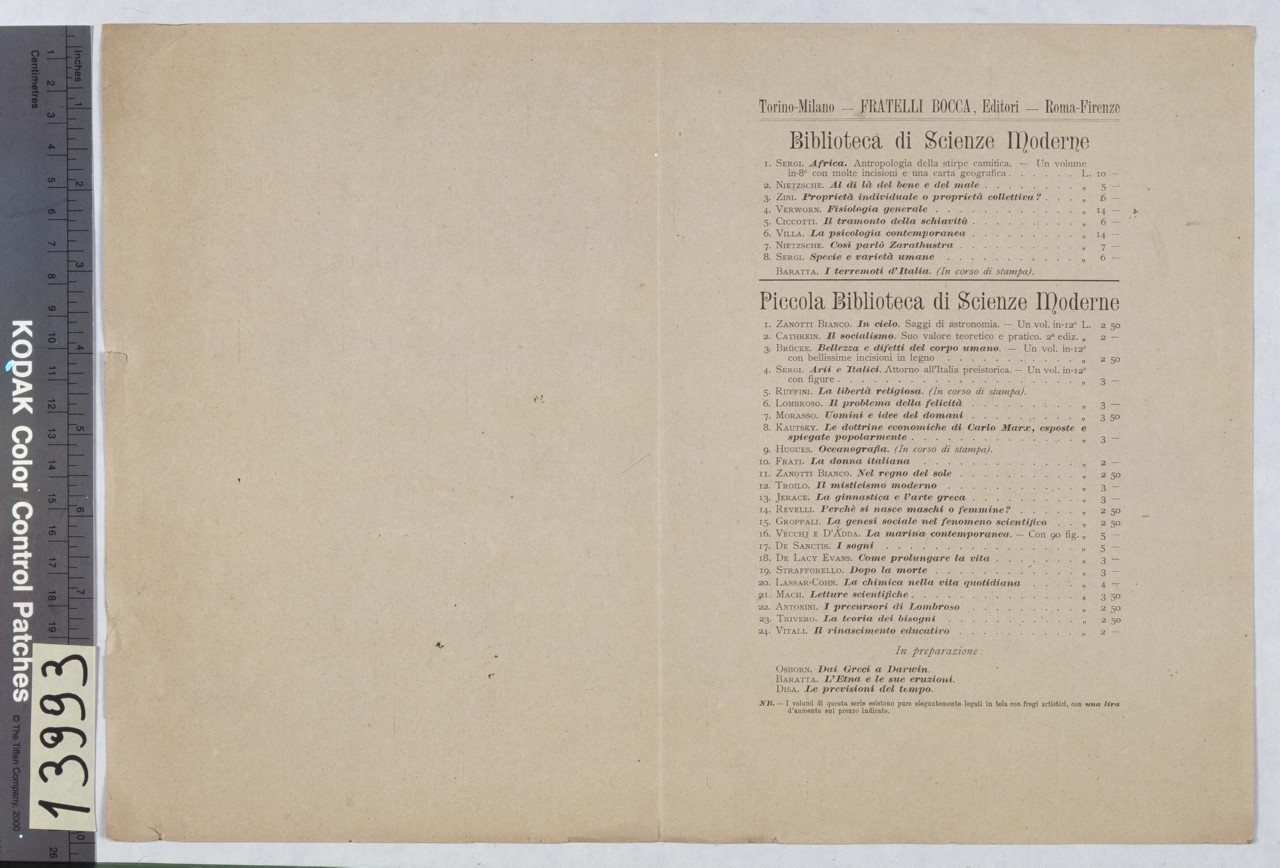 - NOTIZIE STORICO CRITICHE La collana "Biblioteca di Scienze Moderne" risale al 1897. Mataloni lavora per i Fratelli Bocca tra la fine del XIX e l'inizio del XX sec