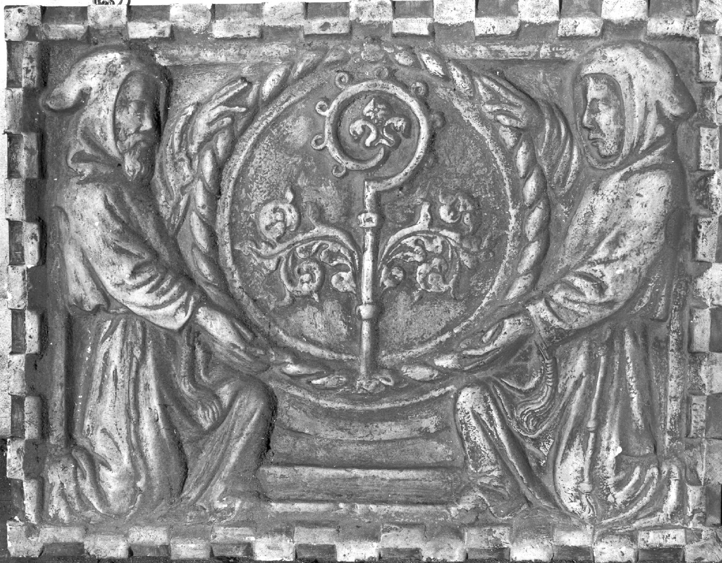 Figure maschili: confratelli. Abbigliamento religioso. Simboli: pastorale