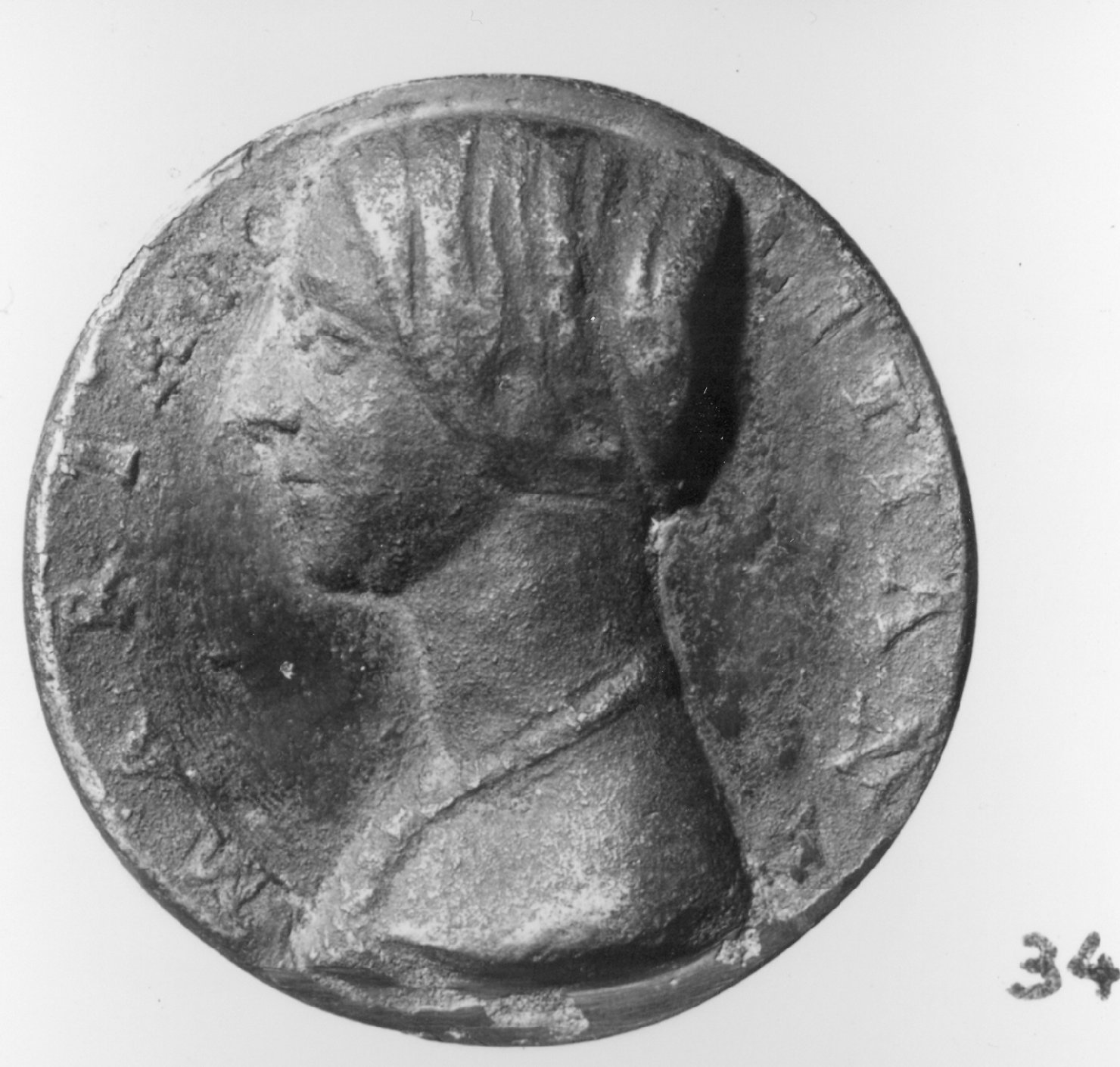 - ISCRIZIONI lungo la circonferenza - MARIA. POLITIANA - lettere capitali - a rilievo -