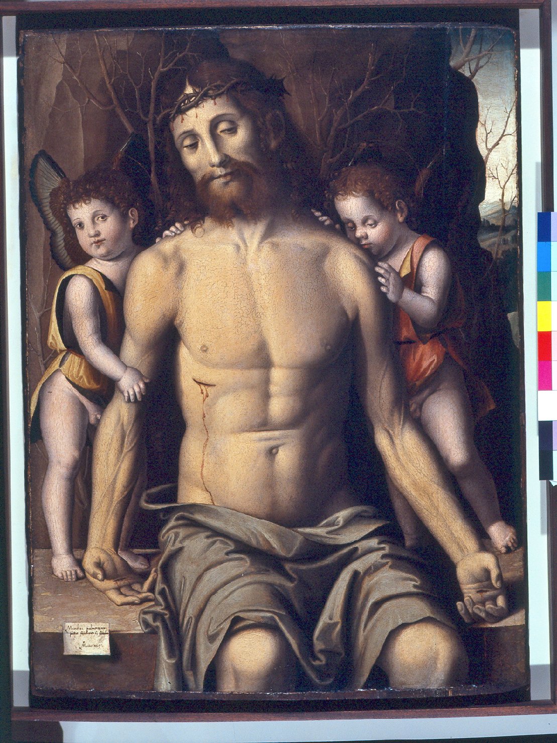 - ISCRIZIONI in basso a sinistra entro cartiglio - Palmezzano, Marco - corsivo - a pennello -