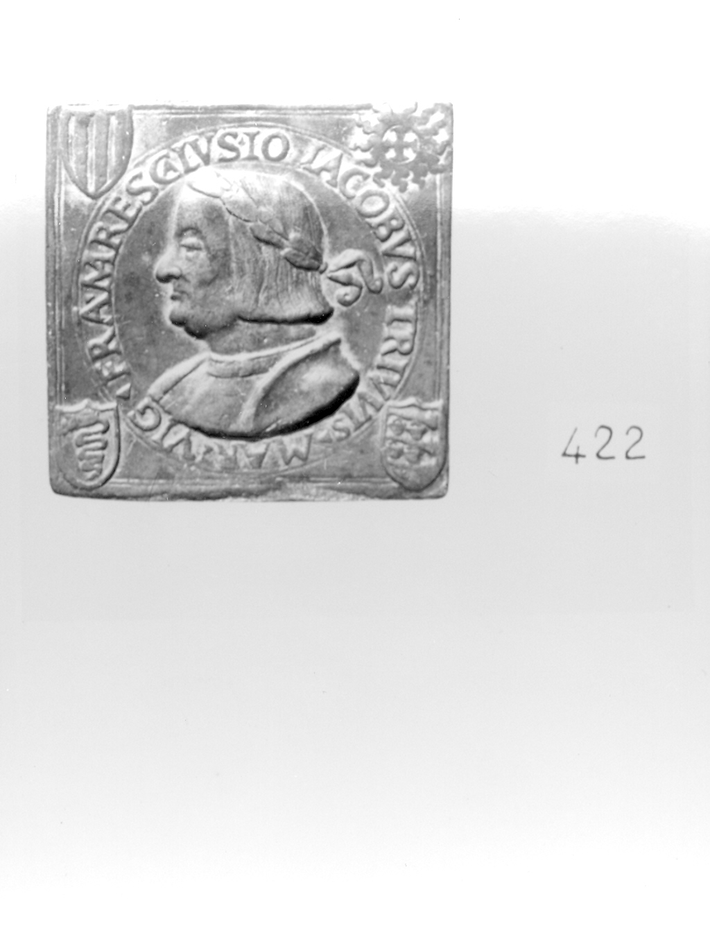 - ISCRIZIONI attorno al busto - IO. IACOBVS. TRIVVLS. MAR. VIG. FRA. MARESCALVS - lettere capitali - a rilievo -