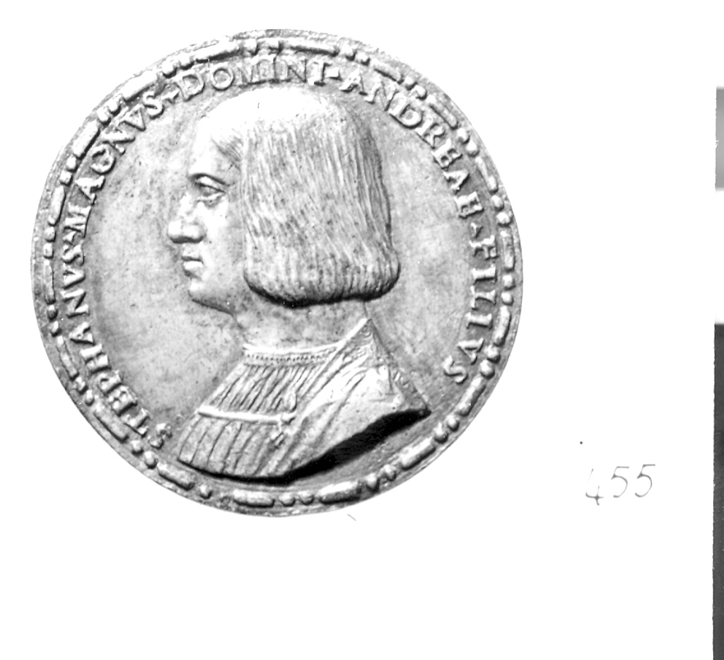- ISCRIZIONI lungo la circoferenza - STEPHANVS. MAGNVS. DOMINI. ANDREAE. FILIVS - lettere capitali - a rilievo -