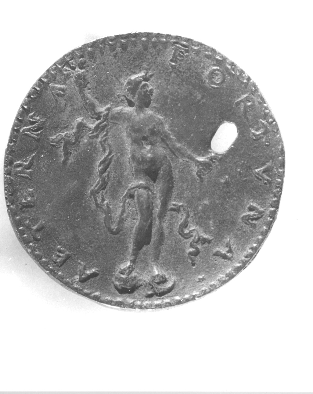 Fortuna semi-nuda seduta e rivolta a sinistra