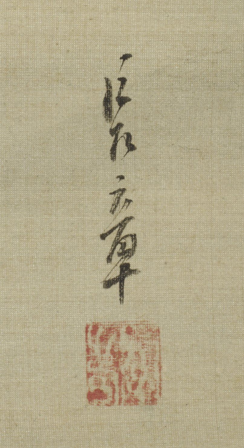 Dipinto su seta montato su un supporto di tessuto e decorato con altribroccati di seta pregiata tale da poter essere arrotolato per laconservazione. Terminali del jikugi (asta di avvolgimento) in osso ocorno. I tessuti degli ichimonji sono bianchi con decori in oro. I nastrifûtai che solitamente pendono dall'alto non sono previsti perquest'opera. Manca anche il chûberi, e lo honshi è posto direttamente acontatto con il jôge color ocra a motivi vegetali in filo nocciola