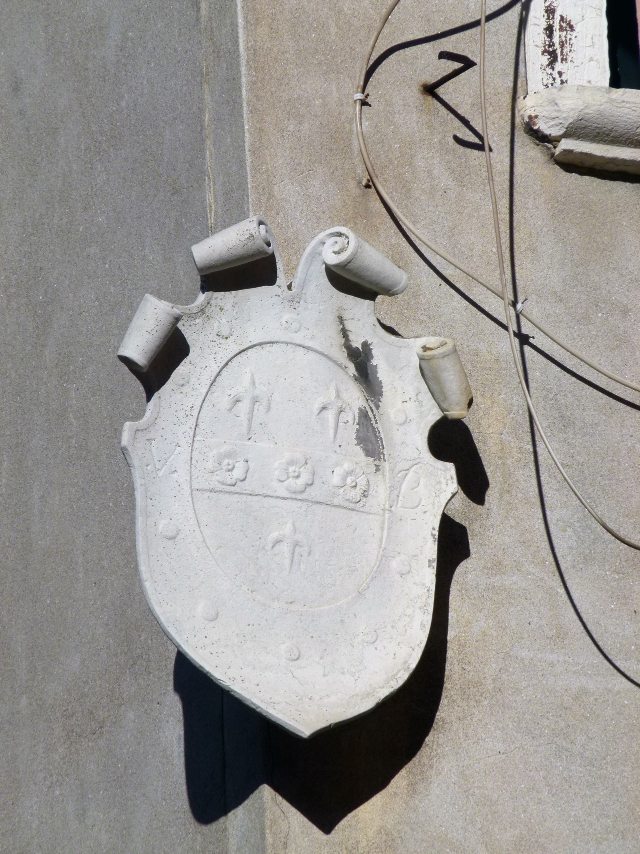 - STEMMI all'angolo con calle del Monastero - familiare - Stemma - spaccato; nel primo a due gilgli (?), nel secondo uno, con la banda caricata di tre fiori a quattro petali