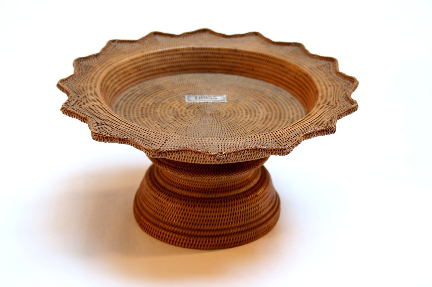 Supporto con fusto a base circolare e piano a forma di stella, intrecciato secondo la tecnica nawame ami