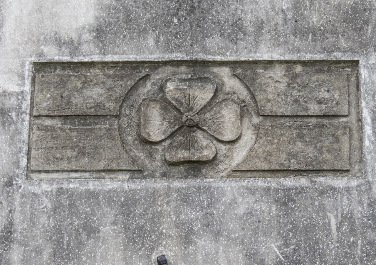raffigurazione a rilievo di rosetta quadrilobata bottonata, inquadrata da motivo decorativo geometrico