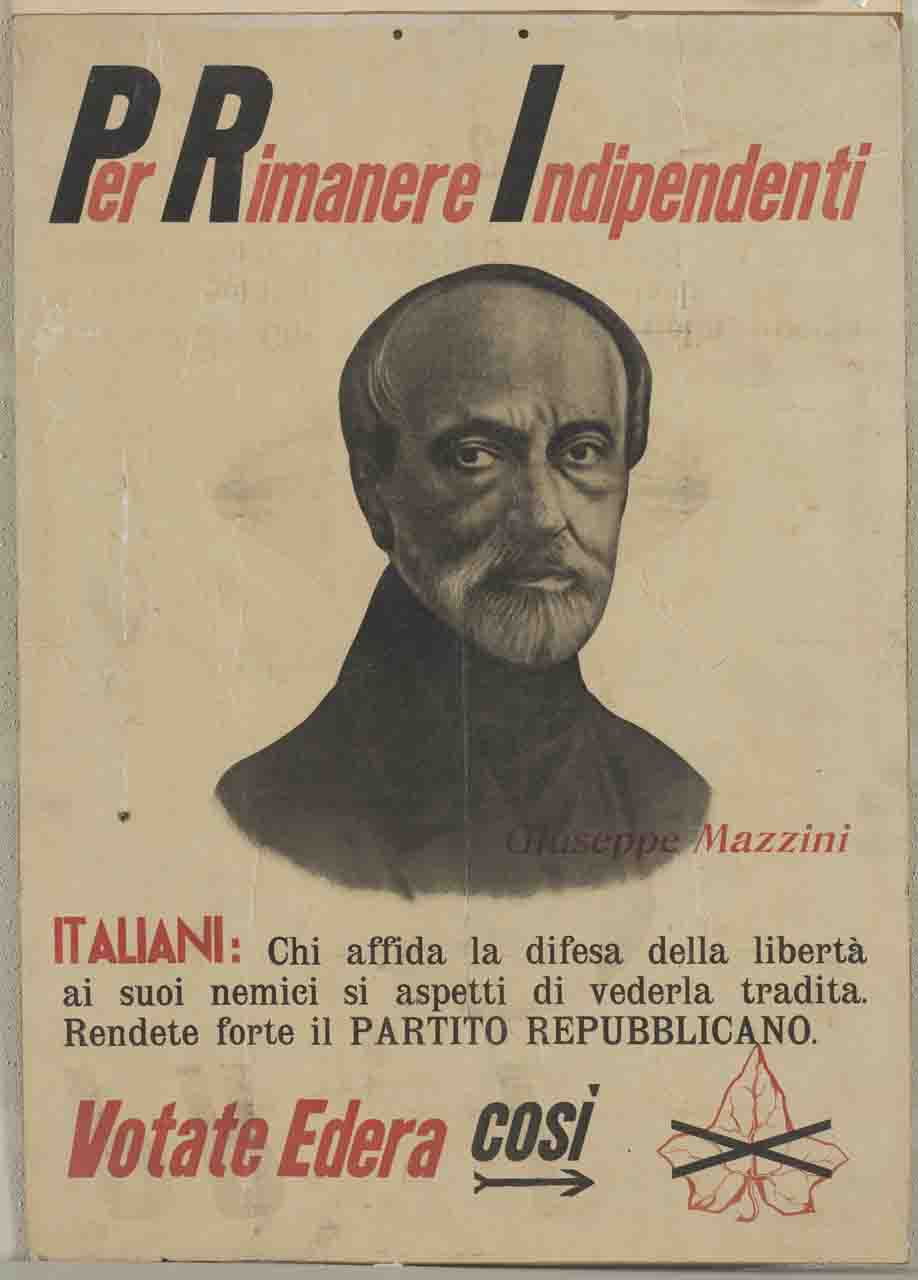 Per rimanere indipendenti Partito Repubblicano Italiano. ritratto di Giuseppe Mazzini