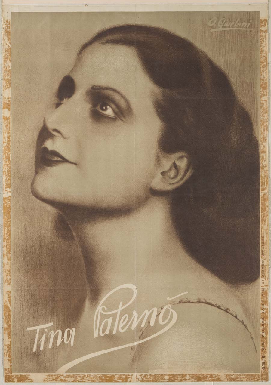 Lettura iconografica: figura femminile; viso; ritratto. Categoria merceologica/ tipo evento: spettacolo; teatro; attori. Nomi: Tina Paternò