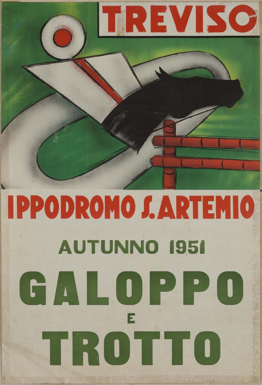 Lettura iconografica: testa di cavallo; ippodromo; ostacolo. Categoria merceologica/ tipo evento: sport; gare; ippica; impianti sportivi; ippodromo. Nomi: Ippodromo S. Artemio. Luoghi: Treviso