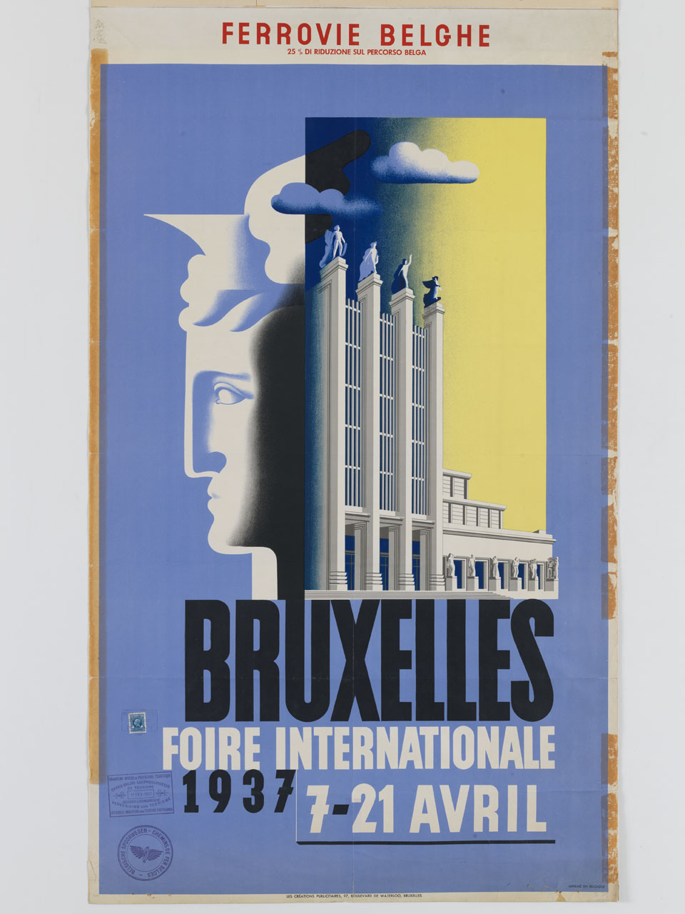 - NOTIZIE STORICO CRITICHE Il manifesto è assegnato unanimente a Lèo Marfurt fondatore de Les Créations Publicitaires, una delle più importanti agenzie di grafica pubblicitaria belga tra gli anni Trenta e gli anni Sessanta. Il medesimo manifesto è stato utilizzato in varie edizioni della Fiera Internazionale di Bruxelles, con variazioni coloristiche (ancora nell'edizione del 1949 si riproponeva lo stesso soggetto)