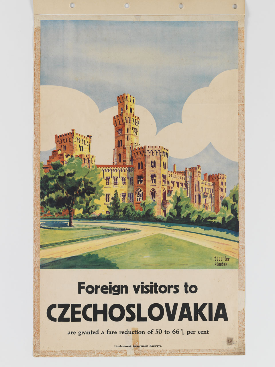 Lettura iconografica: architetture; Castello di Hluboká nad Vltavou. Categoria merceologica/ tipo evento: turismo; trasporti; trasporto terrestre; compagnia ferroviaria. Nomi: Czechoslovakia; Cecoslovacchia; Czechoslovak Government Railway. Luoghi: Repubblica Ceca; Boemia; Hluboká nad Vltavou