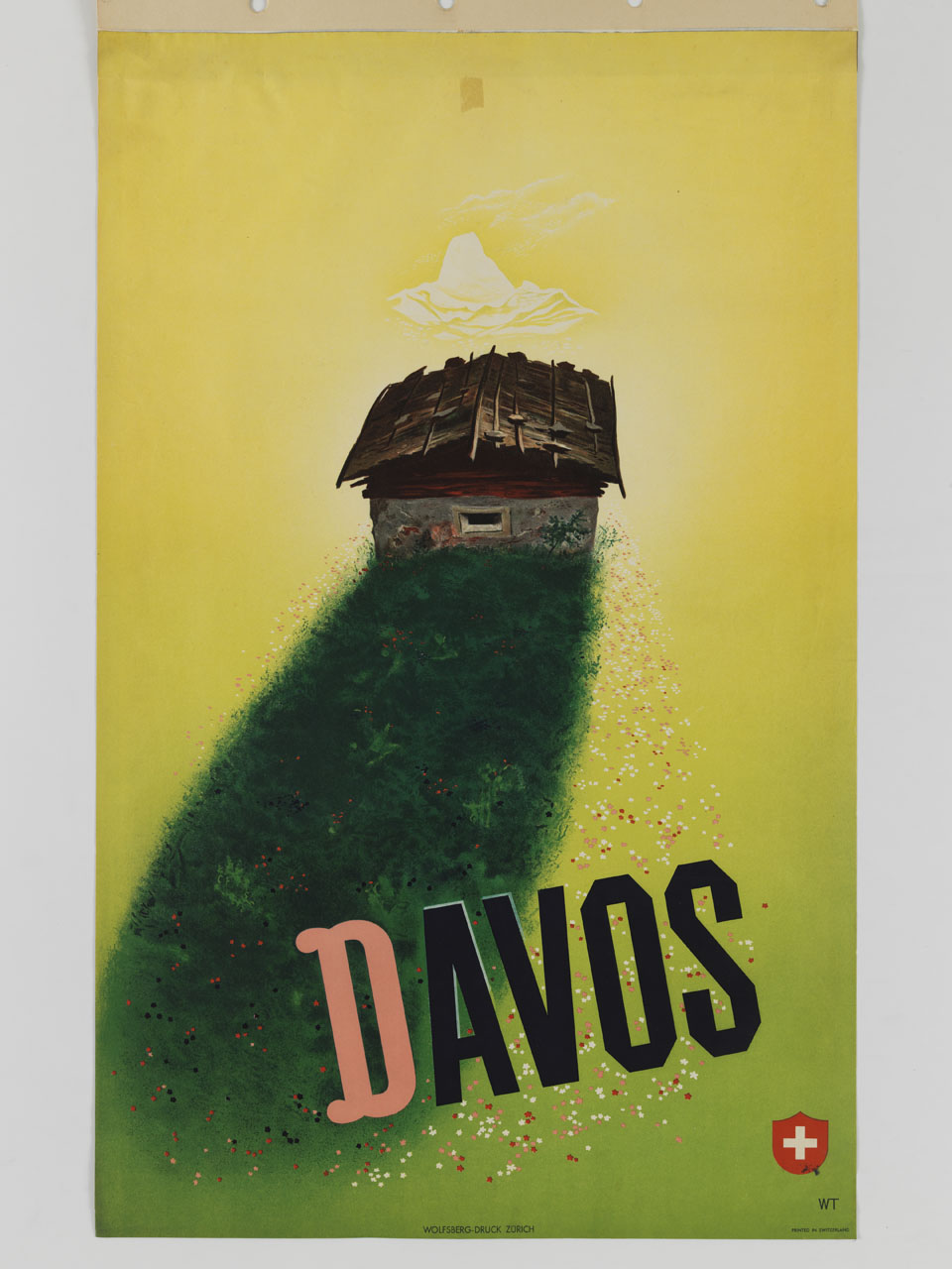 Lettura iconografica: prato; fiori; casa; montagna. Categoria merceologica/ tipo evento: turismo; montagna. Nomi: Davos. Luoghi: Svizzera; Cantone dei Grigioni