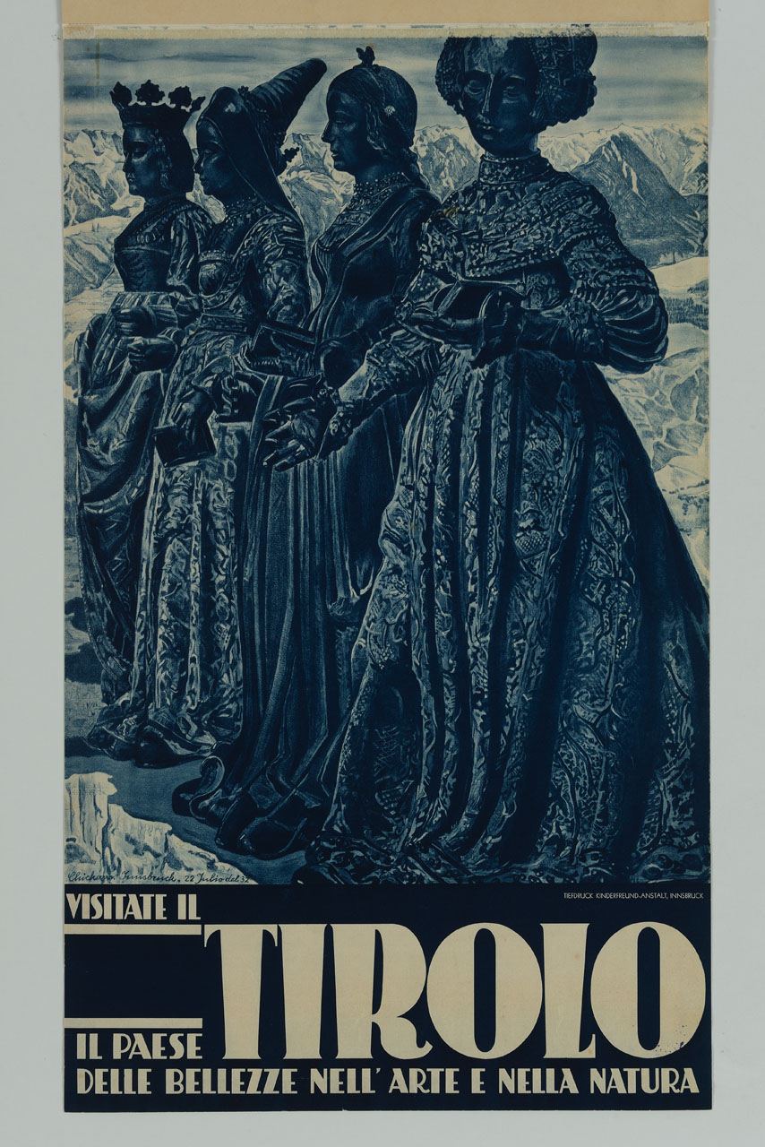 Lettura iconografica: figure femminili; statue bronzee; regine; vestiti; gioielli; libretti; cappelli; corona; diademi; stole; ricami; decorazioni; montagne; neve; ghiacciai. Categoria merceologica/ tipo evento: turismo. Nomi: Hofkirche; Chiesa di Corte; Schwarz-Mander-Kirche; Chiesa degli Uomini neri; Ferdinando I; Massimiliano I d’Asburgo; Bianca Maria Sforza; Maria di Borgogna; Elisabetta di Tirolo-Gorizia; Cunegonda d'Asburgo. Luoghi: Austria; Tirolo; Innsbruck