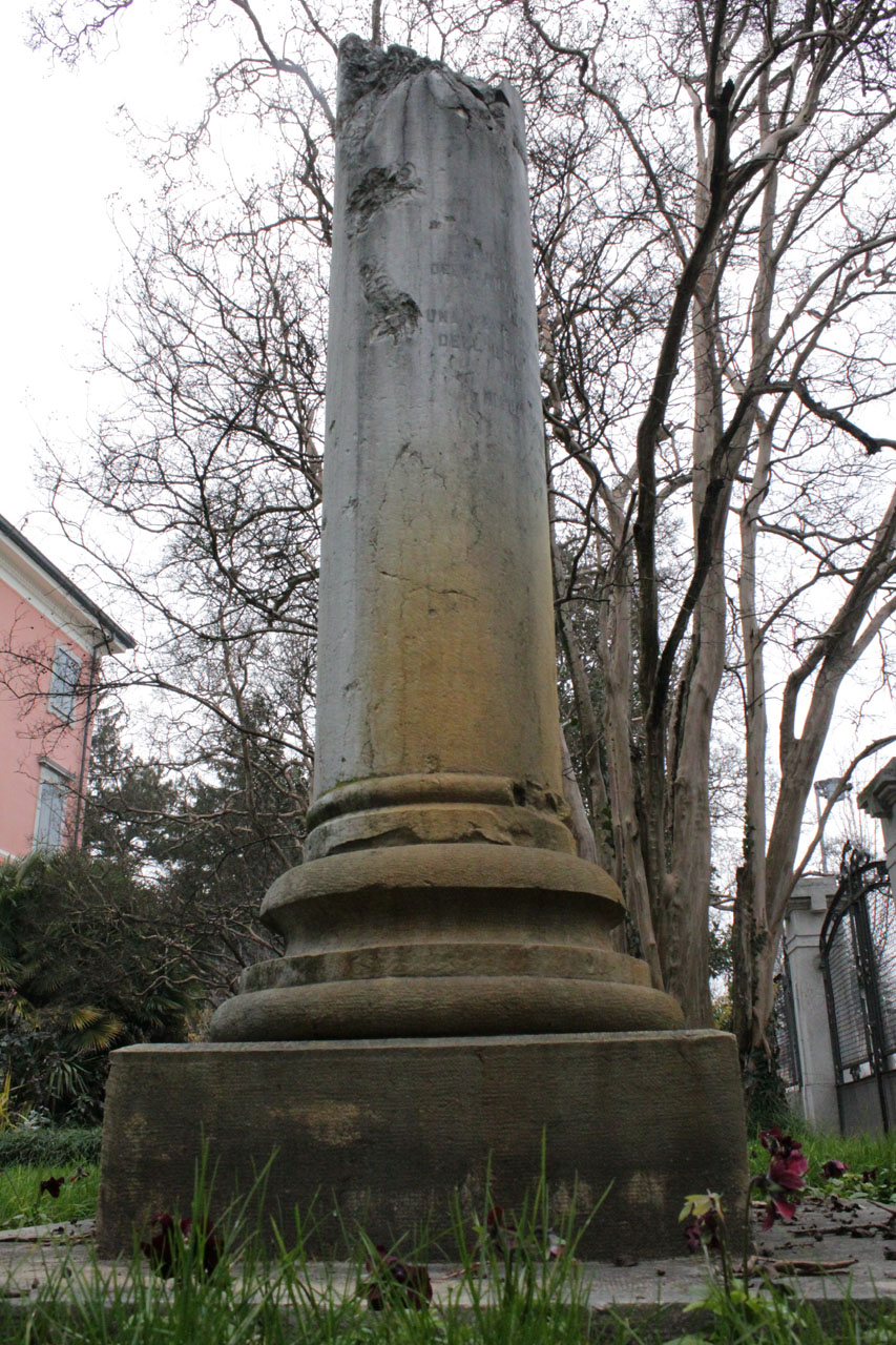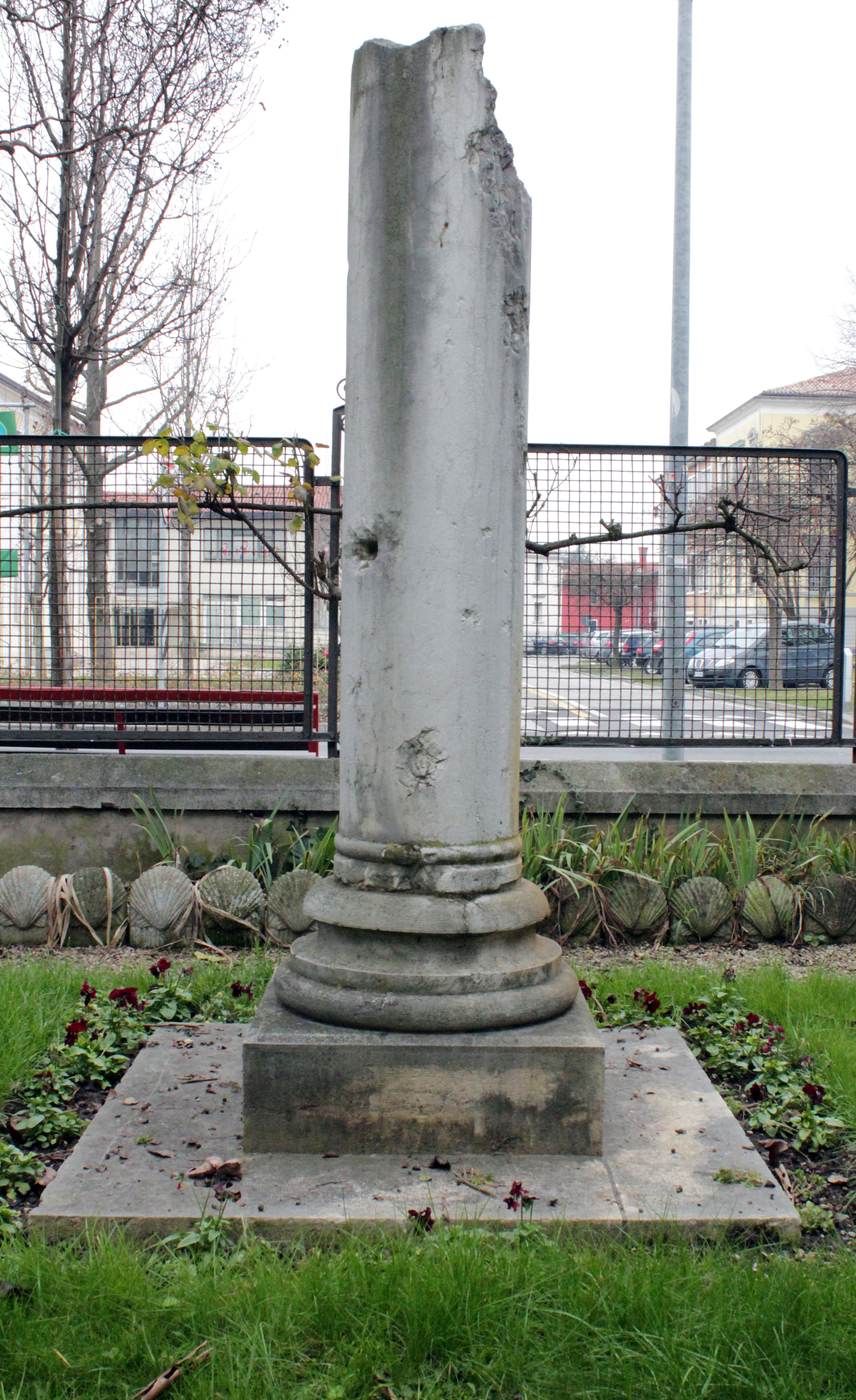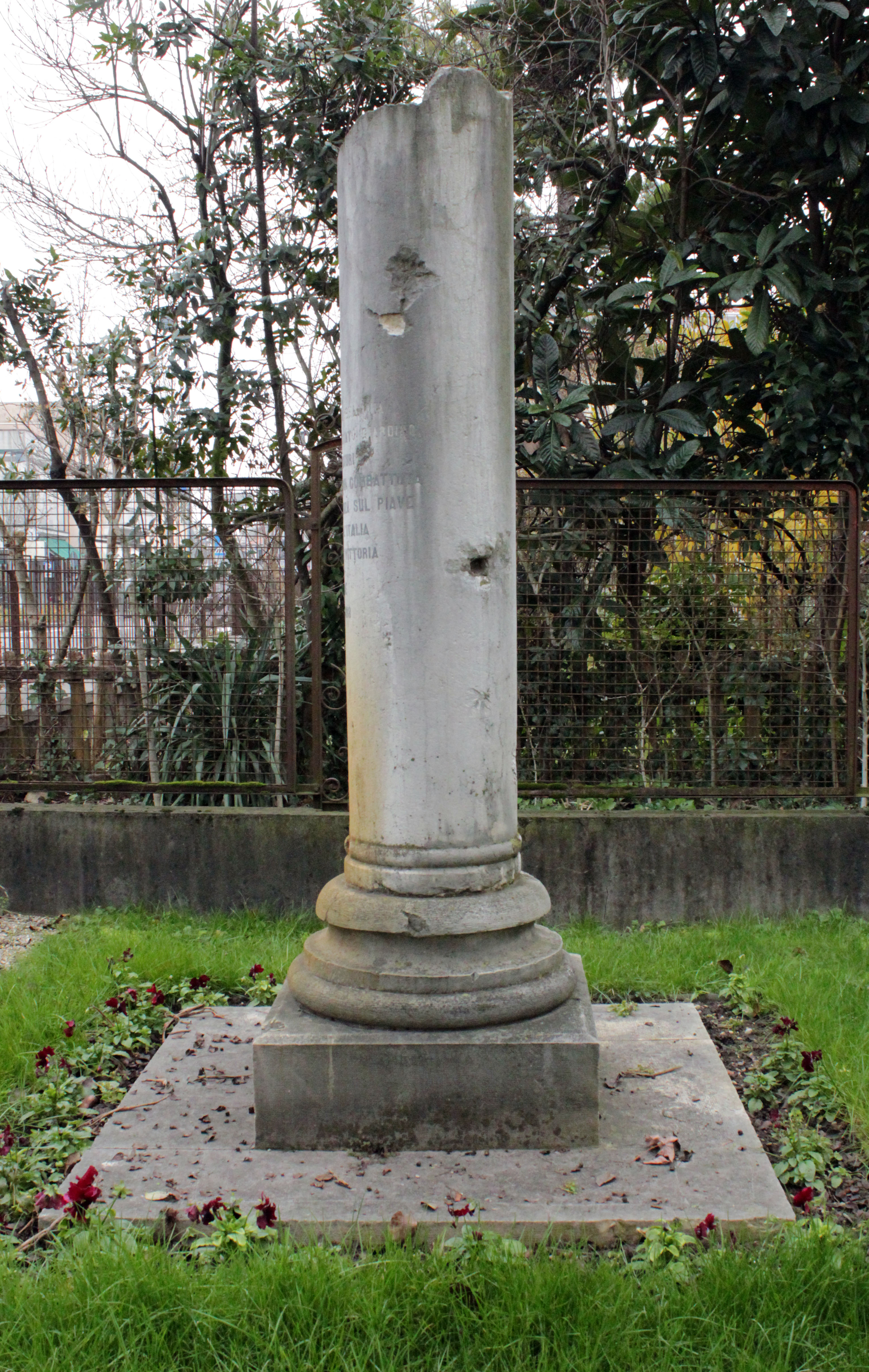 - NOTIZIE STORICO CRITICHE Già nella stessa proprietà, il monumento è stato trasferito nell'attuale punto del giardino negli anni 1968-1970. Originariamente era collocata all'interno di una vasca ovale, andata distrutta. Citata in: Associazione Nazionale Combattenti e Reduci. Federazione Provinciale di Venezia, "Un libro per non dimenticare", Venezia 2006, p. 227. Un altro esemplare della stessa tipologia è il monumento a colonna spezzata dedicato alla memoria di Tito Acerbo, che si trova a Croce di Musile di Piave, inaugurato il 2 ottobre 1927 (Idem, p. 233)