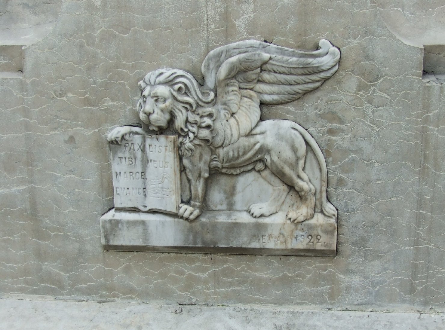 - ISCRIZIONI sul basamento, prospetto frontale - IL POPOLO LAMONESE/ LIBERATO DALL'OPPRESSIONE/ DEL VICINO CONFINE/ E DAI DOLORI/ DELL'INVASIONE NEMICA/ I PROPRI FIGLI/ CADUTI/ NELLA GRANDE GUERRA/ RICORDA/ 24 MAGGIO 1915-8 NOVEMBRE 1918 - capitale - a caratteri applicati -