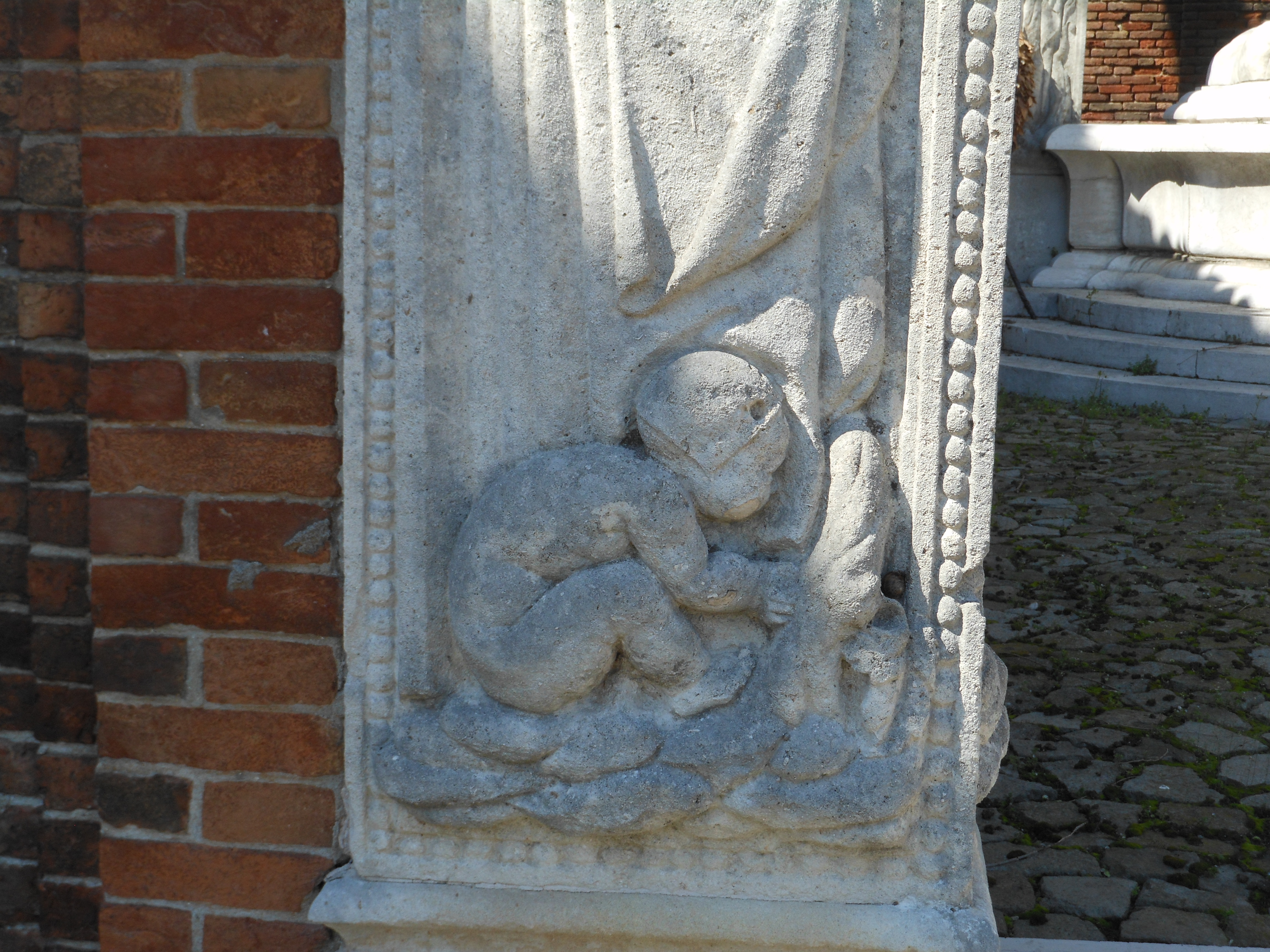 Altorilievo con cornice sagomata posto sulla seconda colonna di destra del monumento, rappresentante il momento della partenza del soldato e il saluto dei cari