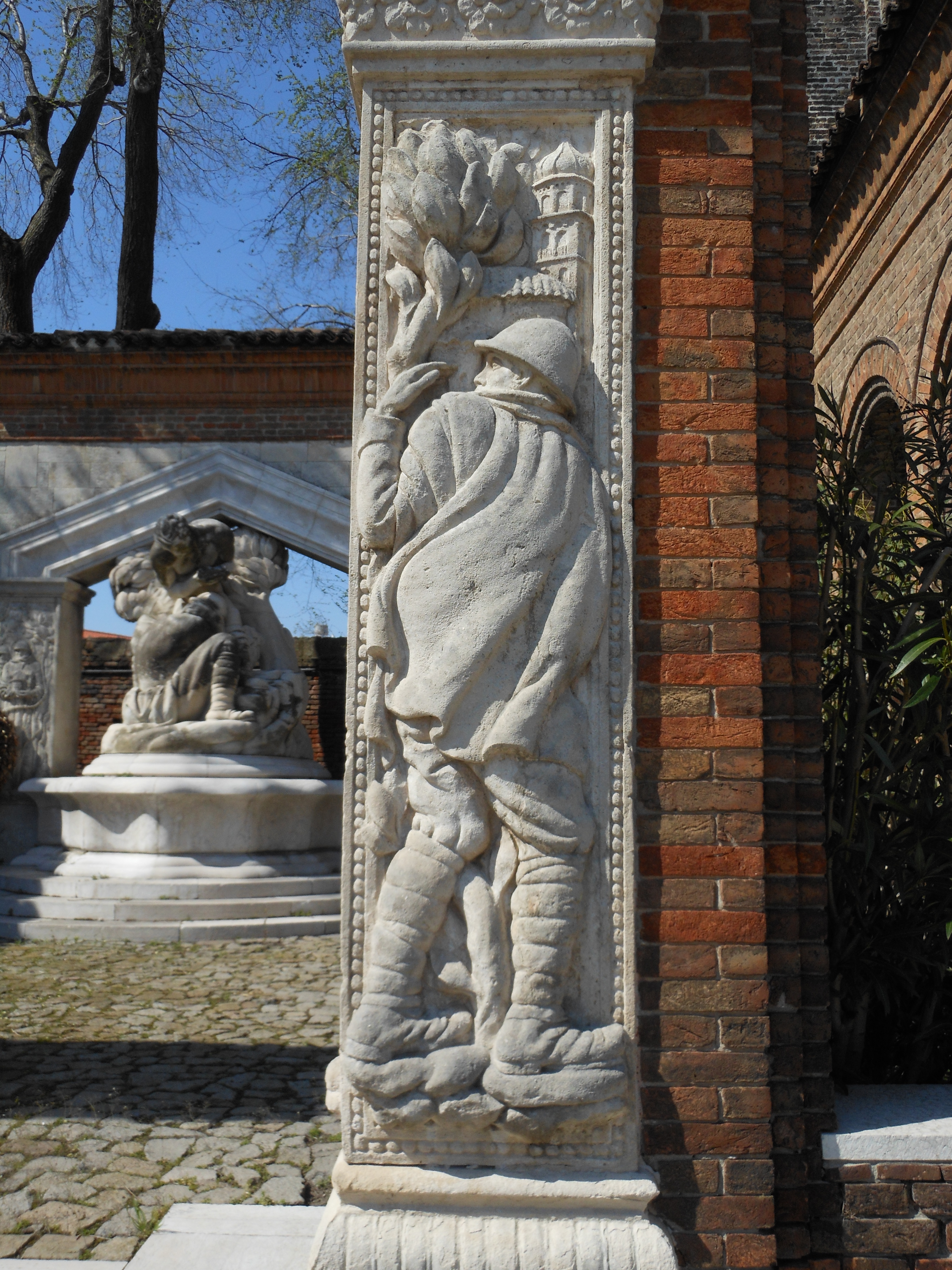 - ISCRIZIONI centrale - NICOLA . NICOLO' . ON / GARO . ODDONE . PALATI / NI . ANTONIO . PINZAN . GIO / VANNI . RAVANELLO . [...] / RENIER . GIOVANNI / RENTO . AMEDEO . ROCCA / LVIGI [...] . AMEDEO / [...] . GIVSEPPE . ROSSI . LO / RENZO . ROSSI . AVGVSTO / ROSSETTO . GIOVANNI / ROSSETTO VMBERTO / ROSSETTO . ANTENORE / [...] ANTONIO / SERENA . ALVISE / [...]. SIEGA / [...]. SCHIAVON [...] SCHIAVON [...] / GIOVANNI / [...] ALBINO - maiuscolo - a incisione - italiano