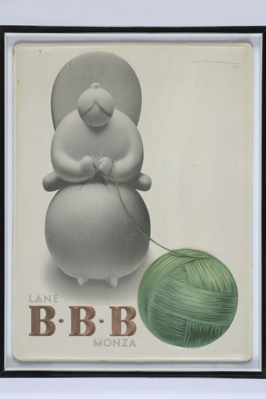 Lettura iconografica: donna; poltrona; gomitolo. Categoria merceologica/ tipo evento: industria tessile; filati; lana. Nomi: Lane B.B.B.; Angelo Borghi. Luoghi: Monza