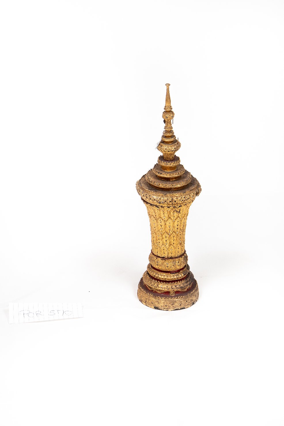 - NOTIZIE STORICO CRITICHE Urna funeraria thailandese a forma di stupa arricchita da foglia d'oro che veniva utilizzata durante la cerimonia funebre di membri della famiglia reale o di alto rango per trasferire le ceneri alla loro ultima dimora dopo la cremazione