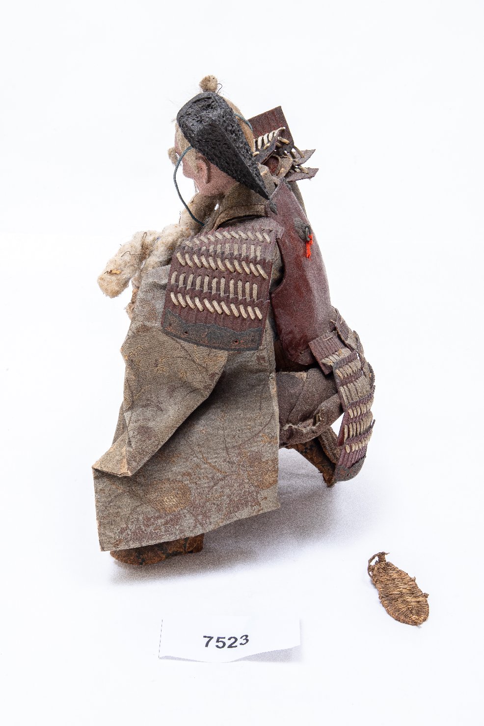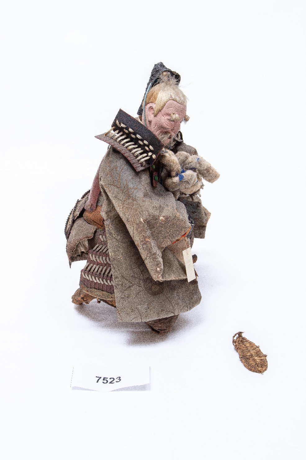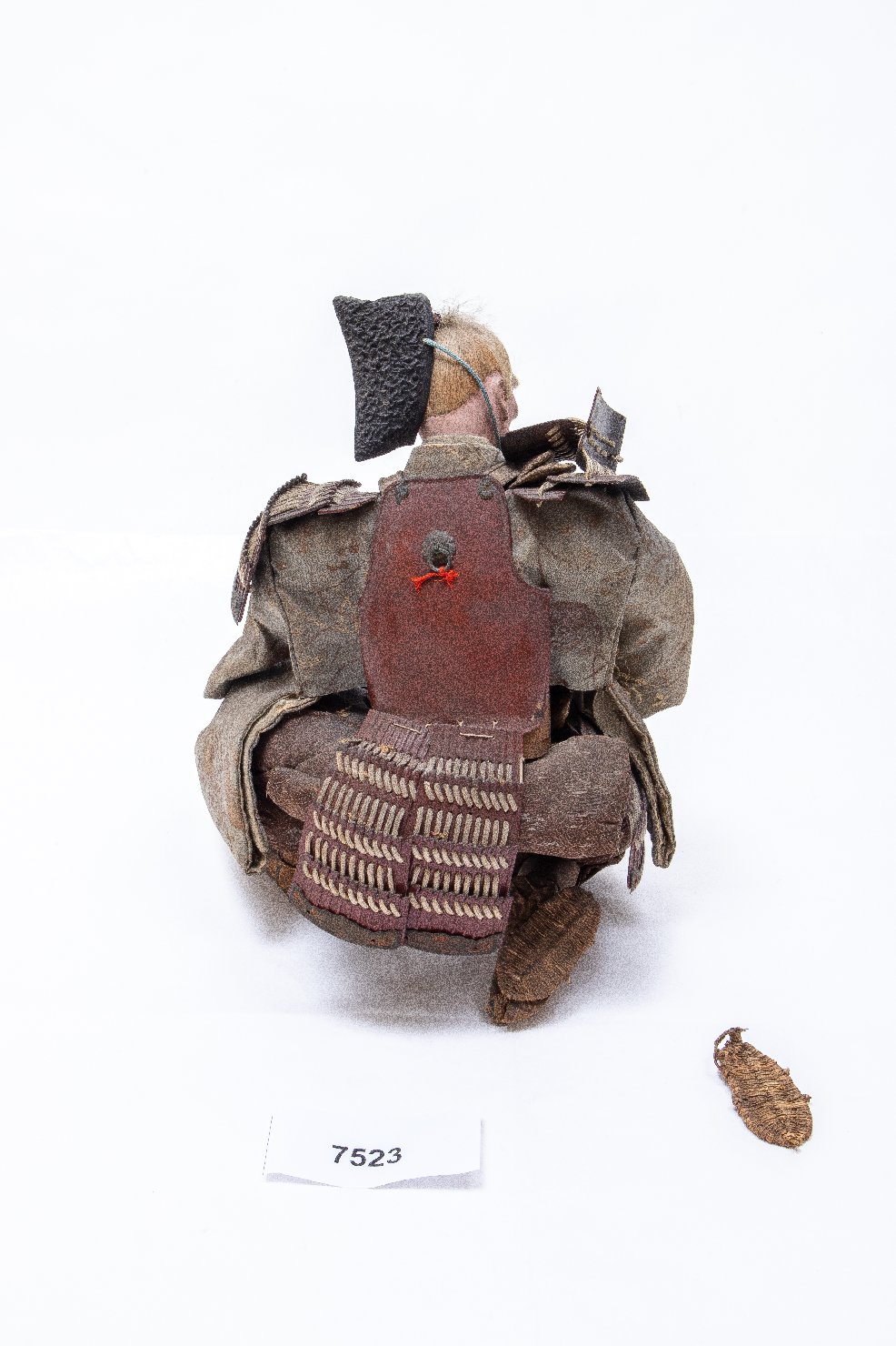 Bambola giapponese detta "musha ningyo" che rappresenta Takenouchi no Sukune, il primo ministro dell'imperatrice Jingu di cui tiene il figlio tra le braccia, il futuro imperatore Ojin. Takenouchi indossa la tipica armatura giapponese detta "yoroi", e sotto indossa una veste di broccato di seta decorata con motivo di "uchiwa" ovvero ventagli rotondi