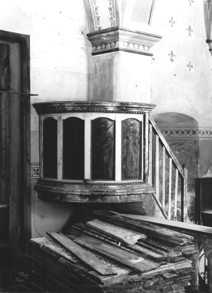 Il pulpito presenta quattro riquadri raffiguranti gli evangelisti