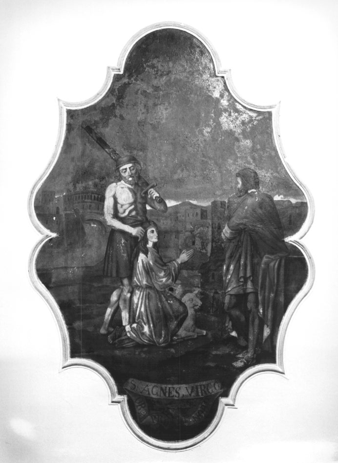 - ISCRIZIONI In basso nel cartiglio - S: AGNES, VIRGO / ORA / PRO / NOBIS - lettere capitali - a pennello - latino