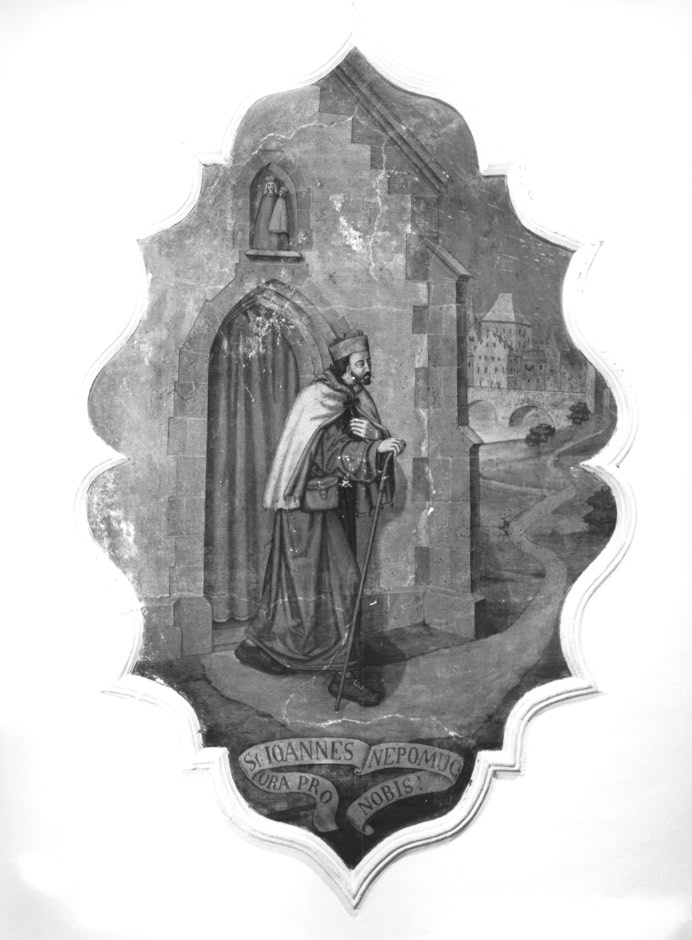 - ISCRIZIONI In basso nel cartiglio - ST: IOANNES NEPOMIC / ORA PRO / NOBIS! - lettere capitali - a pennello - latino