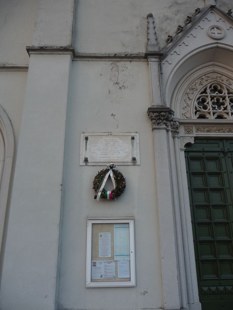 • NOTIZIE STORICO CRITICHE La lapide, collocata sulla facciata della chiesa di Sant'Antonio ai Rizzi, località di Udine, fu scoperta domenica 24 settembre 1922. Nella stessa cerimonia fu inaugurata l'ara monumentale dedicata ai caduti nella prima guerra mondiale che è collocata all'interno dell'edificio di culto, nella navata destra. Bibliografia: "La Patria del Friuli", lunedì 25 settembre 1922