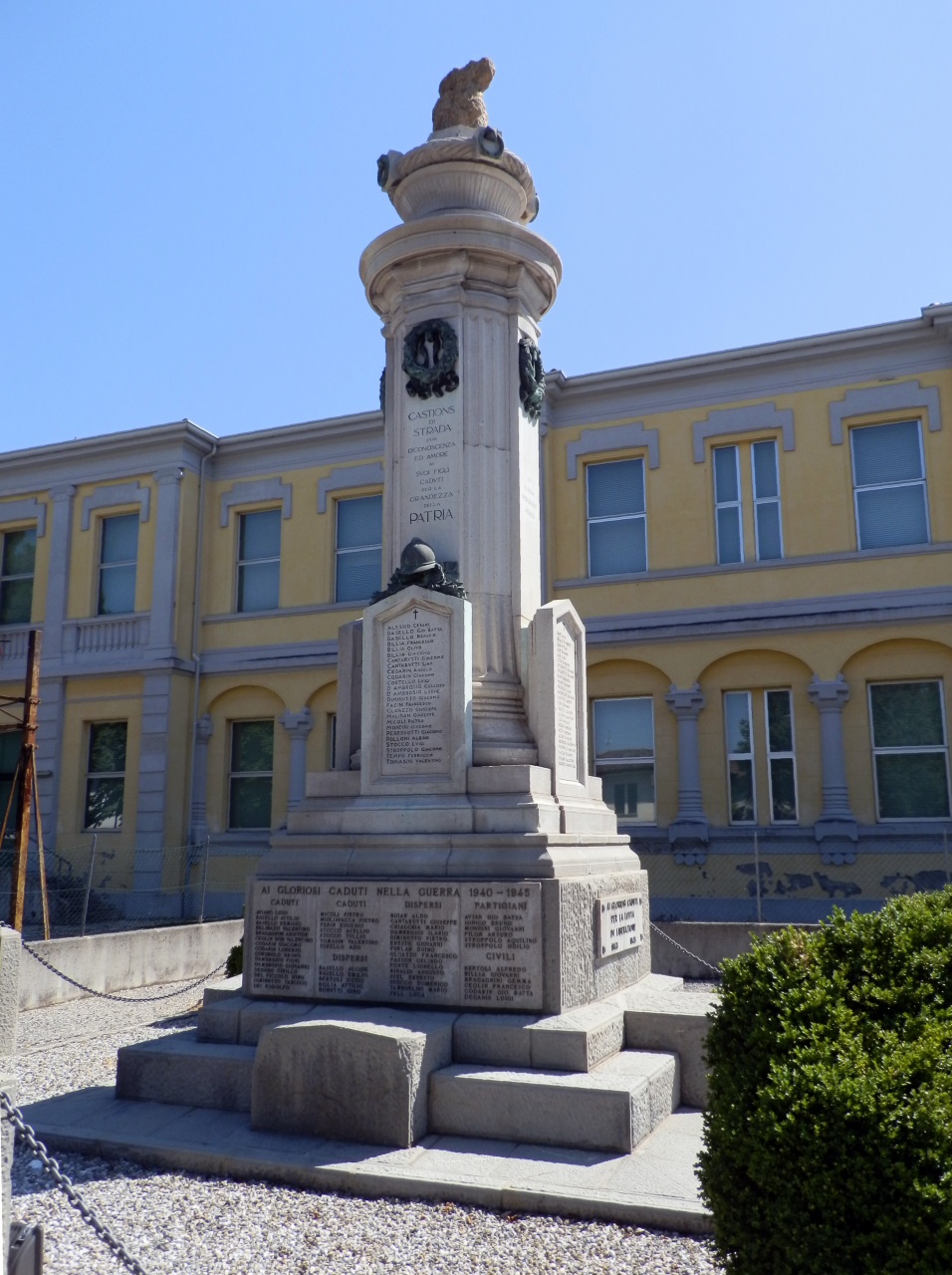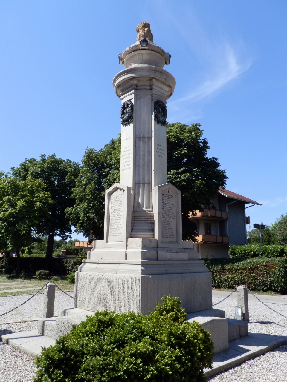 - NOTIZIE STORICO CRITICHE Il monumento fu inaugurato domenica 29 novembre 1925. Dopo il secondo conflitto mondiale sono state applicate con delle borchie altre due lapidi a ricordo dei caduti di quella guerra. Sono situate rispettivamente sul lato frontale e su quello destro del basamento. Bibliografia: "La Patria del Friuli", lunedì 30 novembre 1925